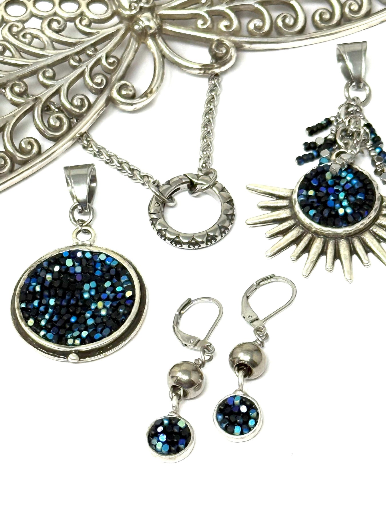 I use high-quality Stainless Steel ear wires and components to ensure your earrings are hypoallergenic, tarnish-resistant and water-resistant. This jewelry is designed for your life! I stand behind every piece I make. See my Designer's Secret Care Guide for easy cleaning tips (linked in the FAQs).