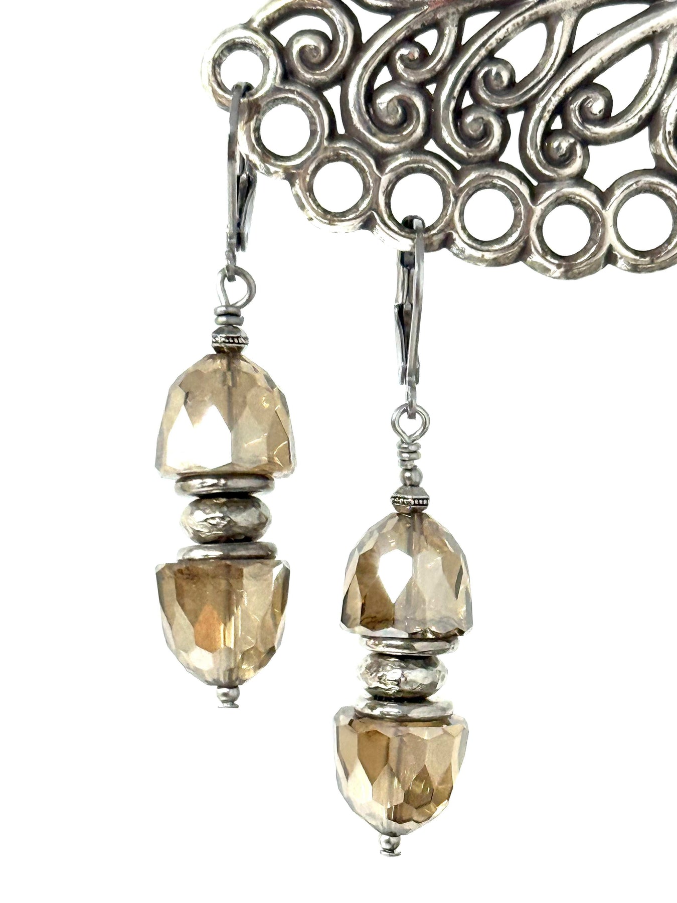 Leverback Earrings Champagne Brown Austrian Crystal - Handmade Jewelry #2688E