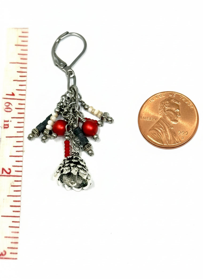 A masterpiece of artisan beadwork, these festive Handmade Christmas Tree Pearl and Seed Bead Dangle Earrings are stunning works of wearable art. Each earring features a delightful Christmas tree design with dangling red and white pearls, crystals, and seed beads that create beautiful movement and sparkle with every turn.