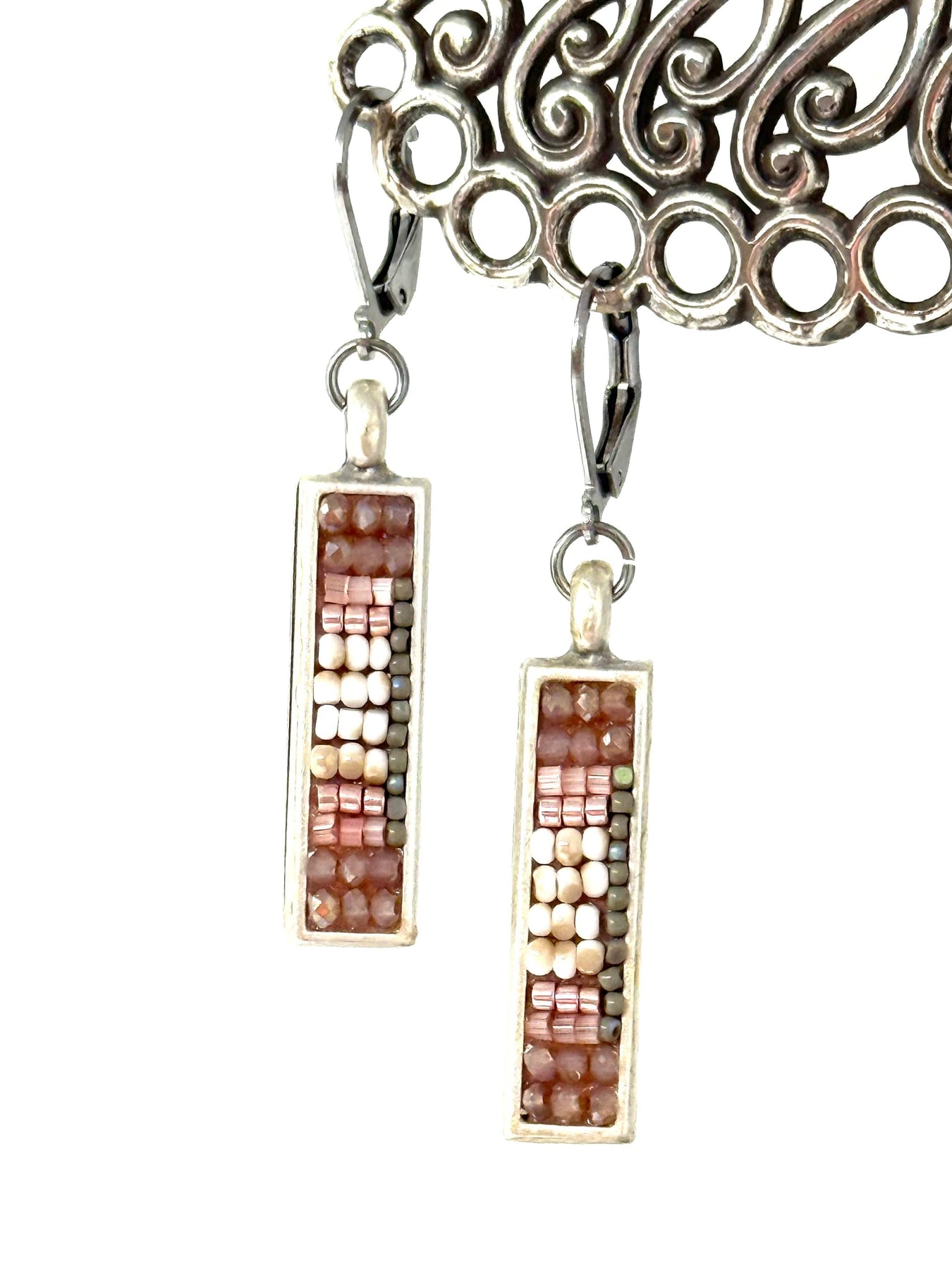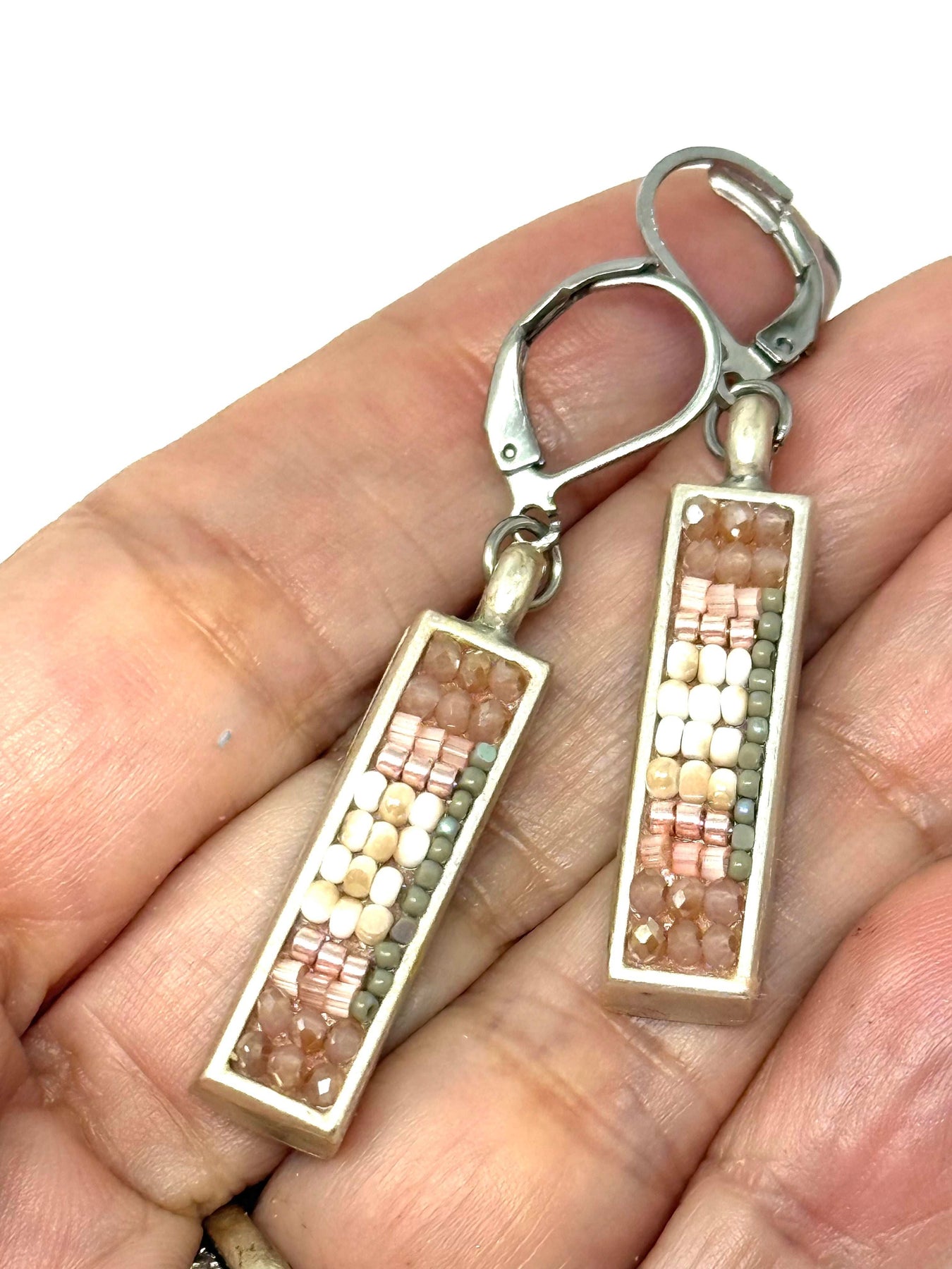 Mosaic Earrings Peach Shimmer - Handmade Beaded Jewelry #2699E