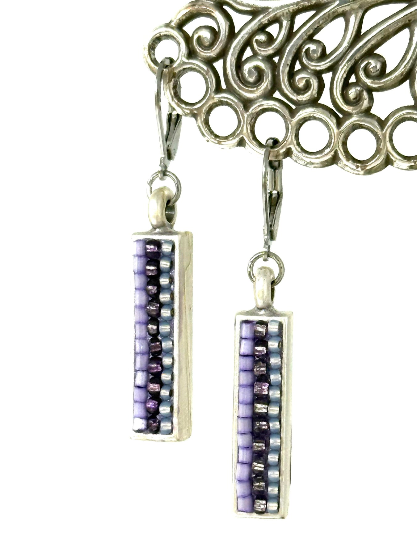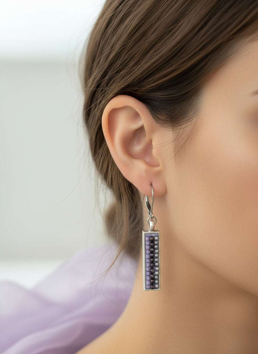 Mosaic Earrings Purple - Handmade Beaded Jewelry