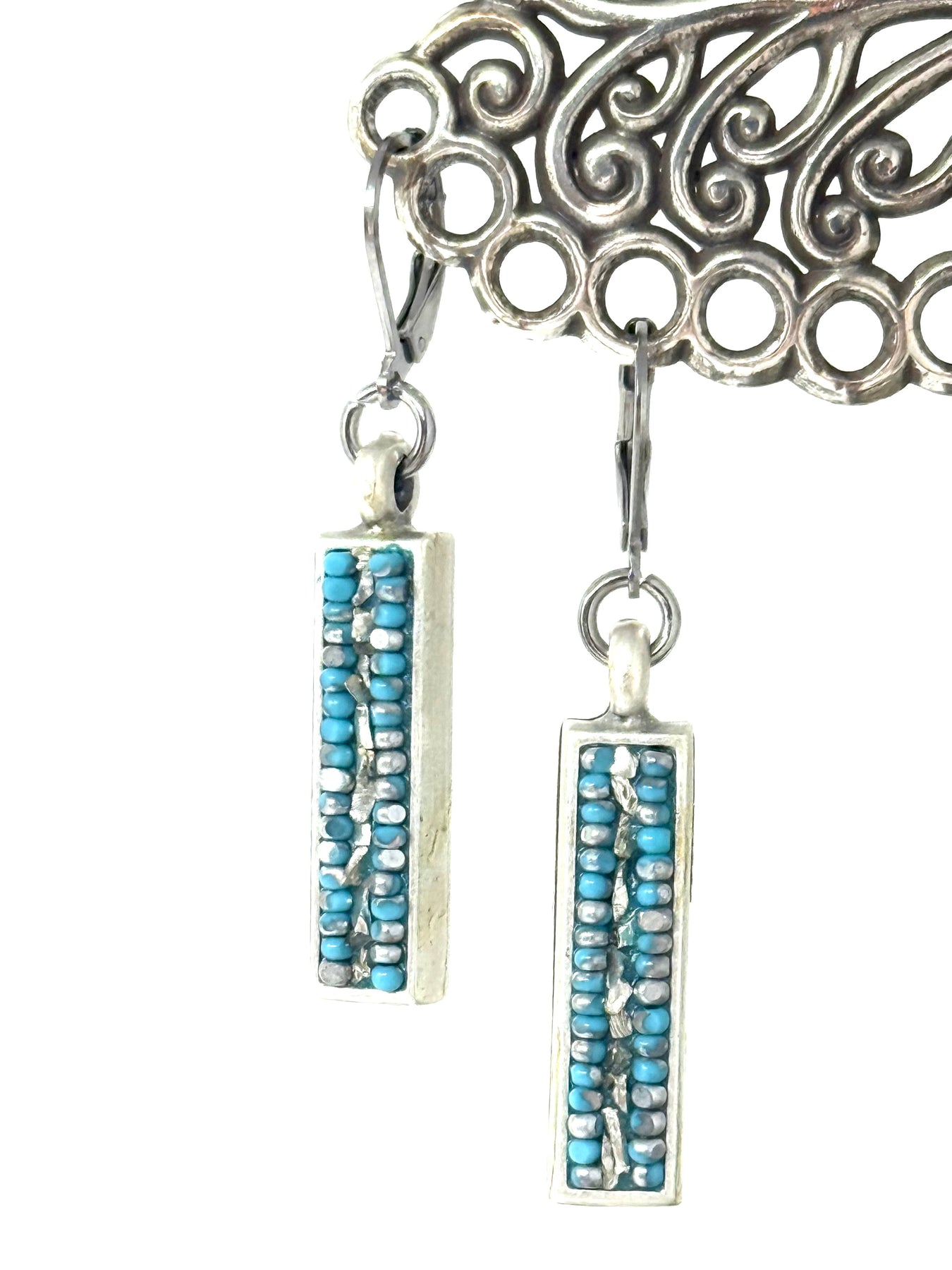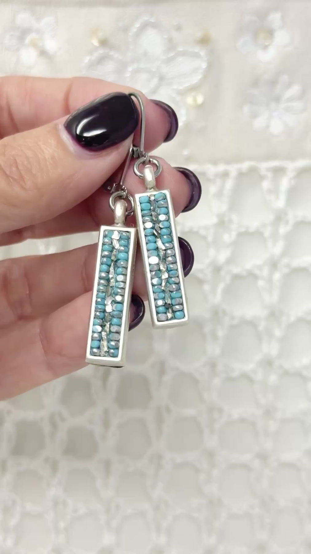 Hand-Beaded Mosaic Turquoise Blue Shimmer Earrings! They&
