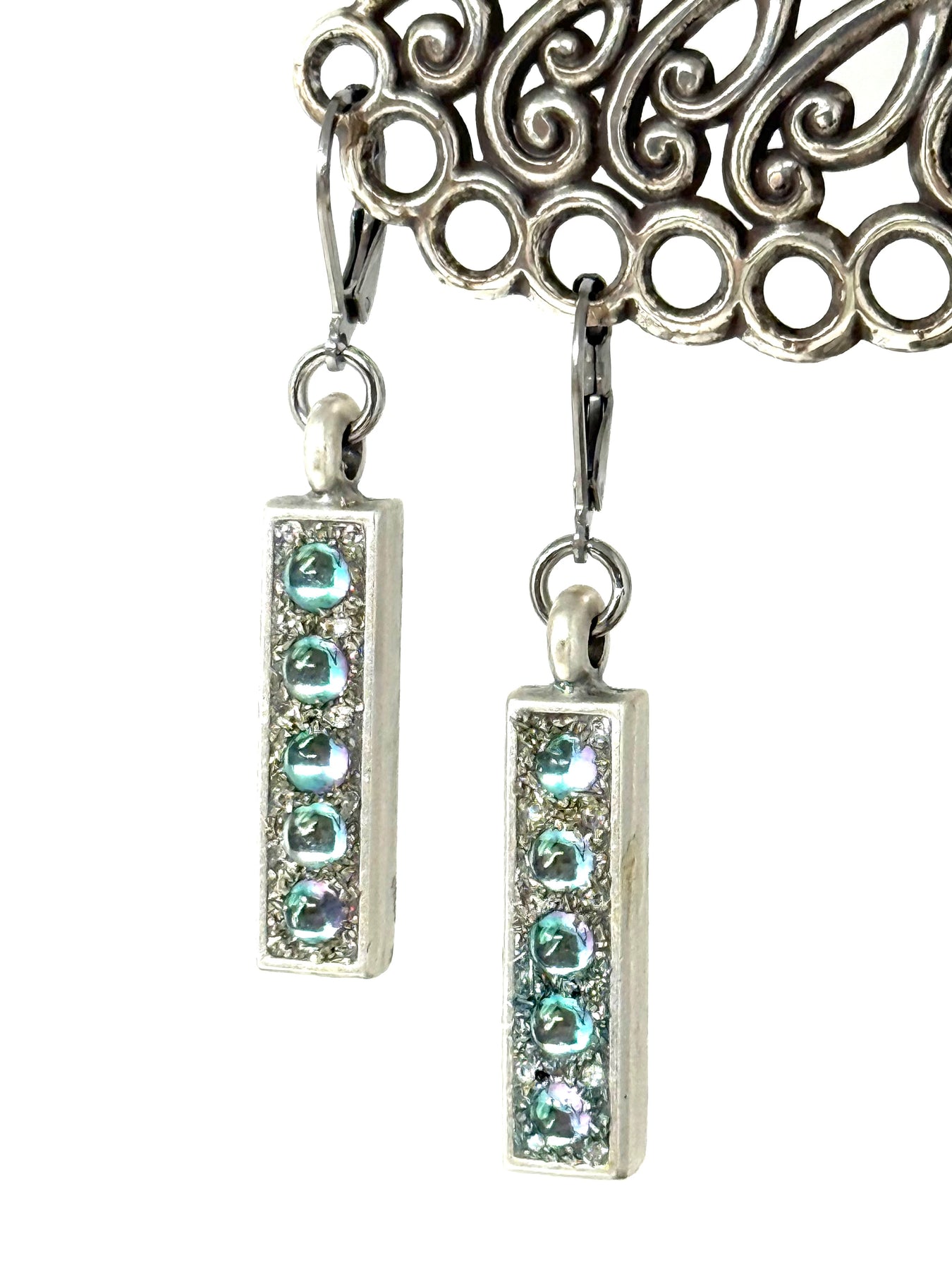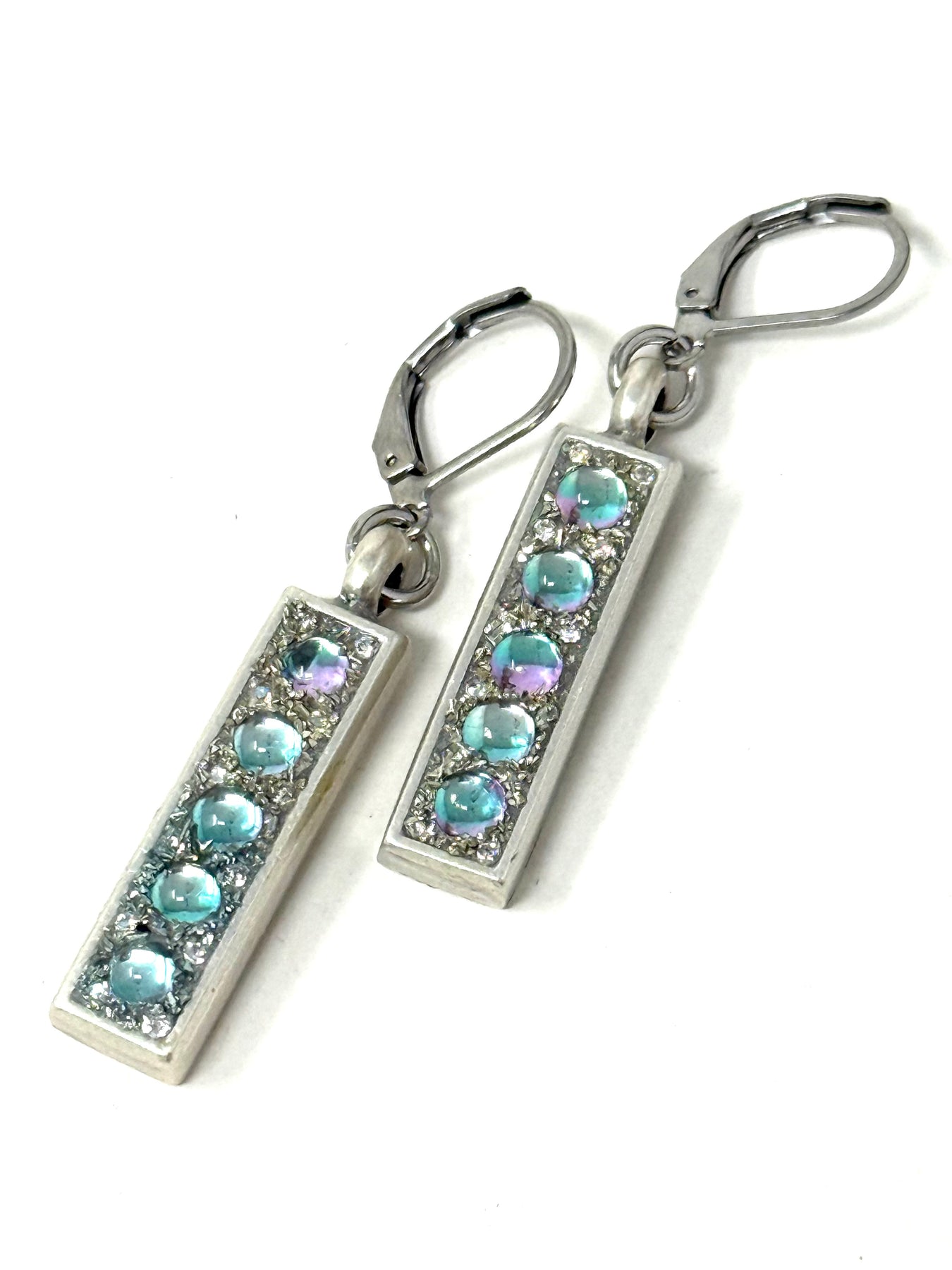 Handmade Long Vintage Frosted Glass Shimmer Beaded Earrings