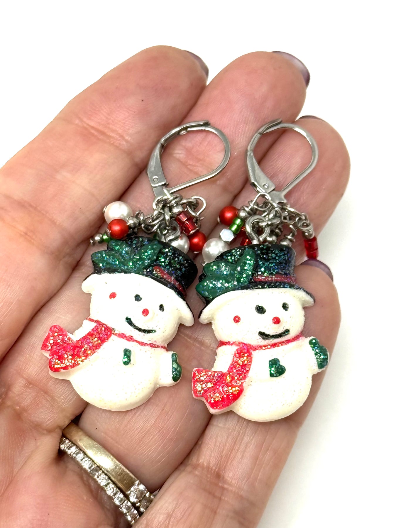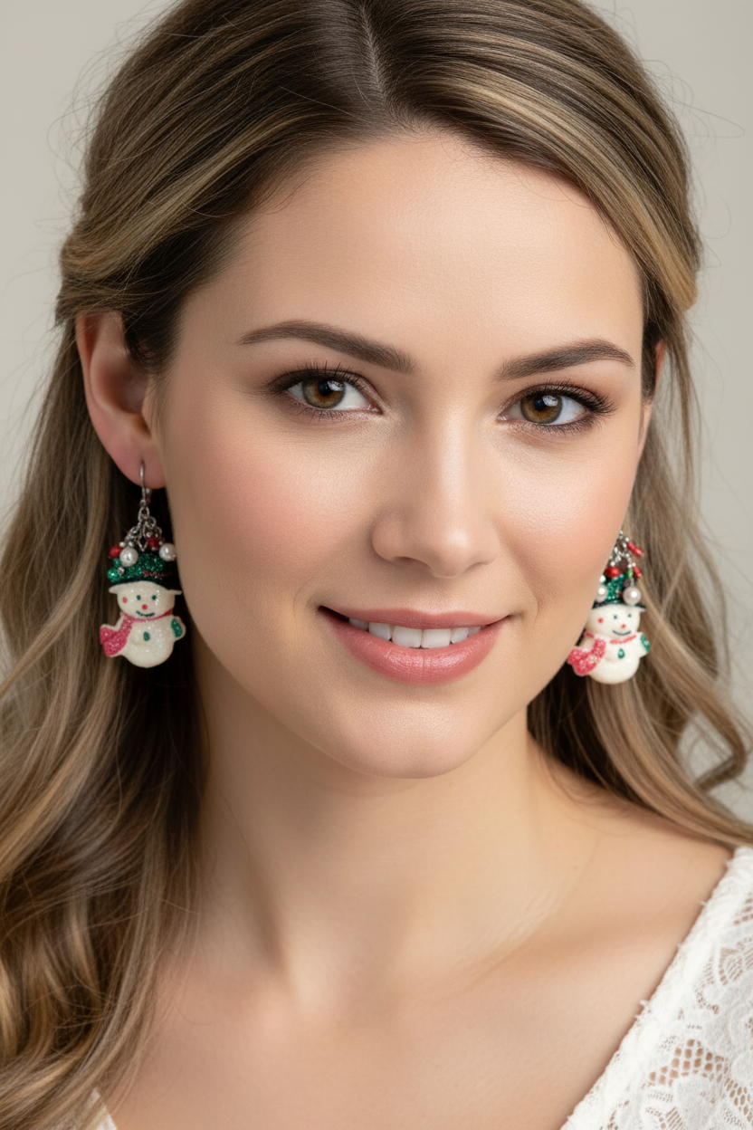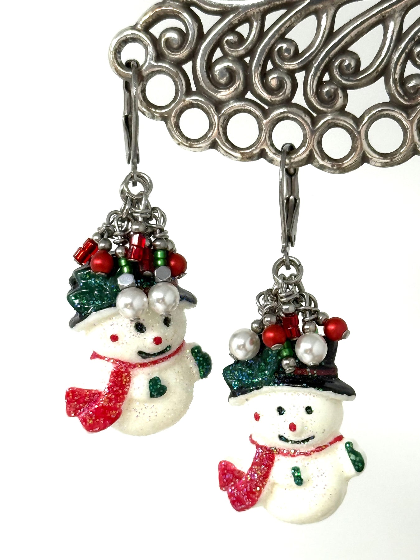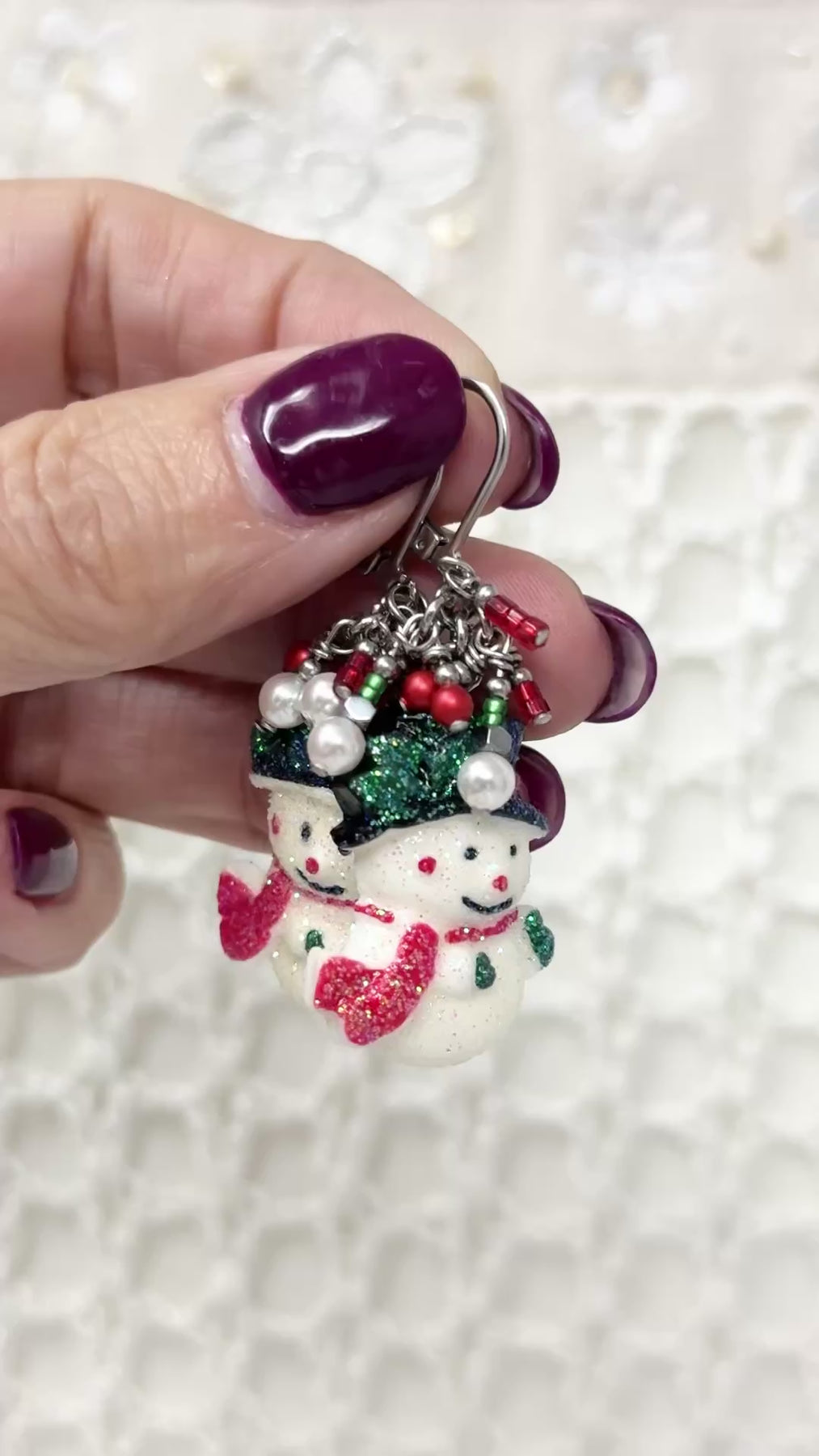 "These snowman earrings are absolutely adorable! The frosted shimmer beads give them such a magical winter feel, and the cascading pearls and seed beads add the perfect touch of elegance. They're so lightweight I forget I'm wearing them, and I get compliments every time!"