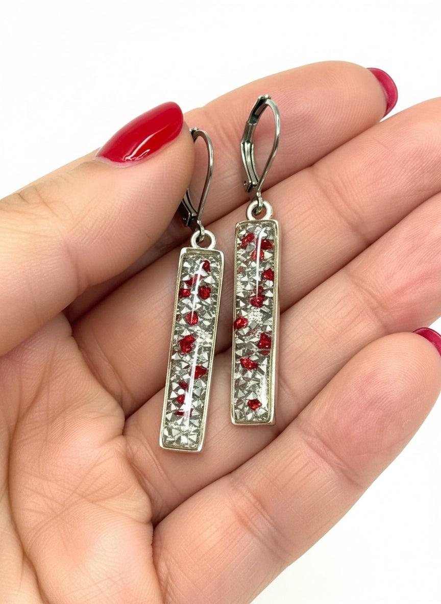 "These are my go-to earrings for the entire holiday season! The frosted silver and red beads with those gorgeous shimmer flakes are so elegant without being over-the-top festive. I love that they're long enough to make a statement but still light as air. They dress up my casual sweaters and look stunning with my holiday party outfits. The leverbacks keep them secure all day, even when I'm rushing around shopping or cooking."