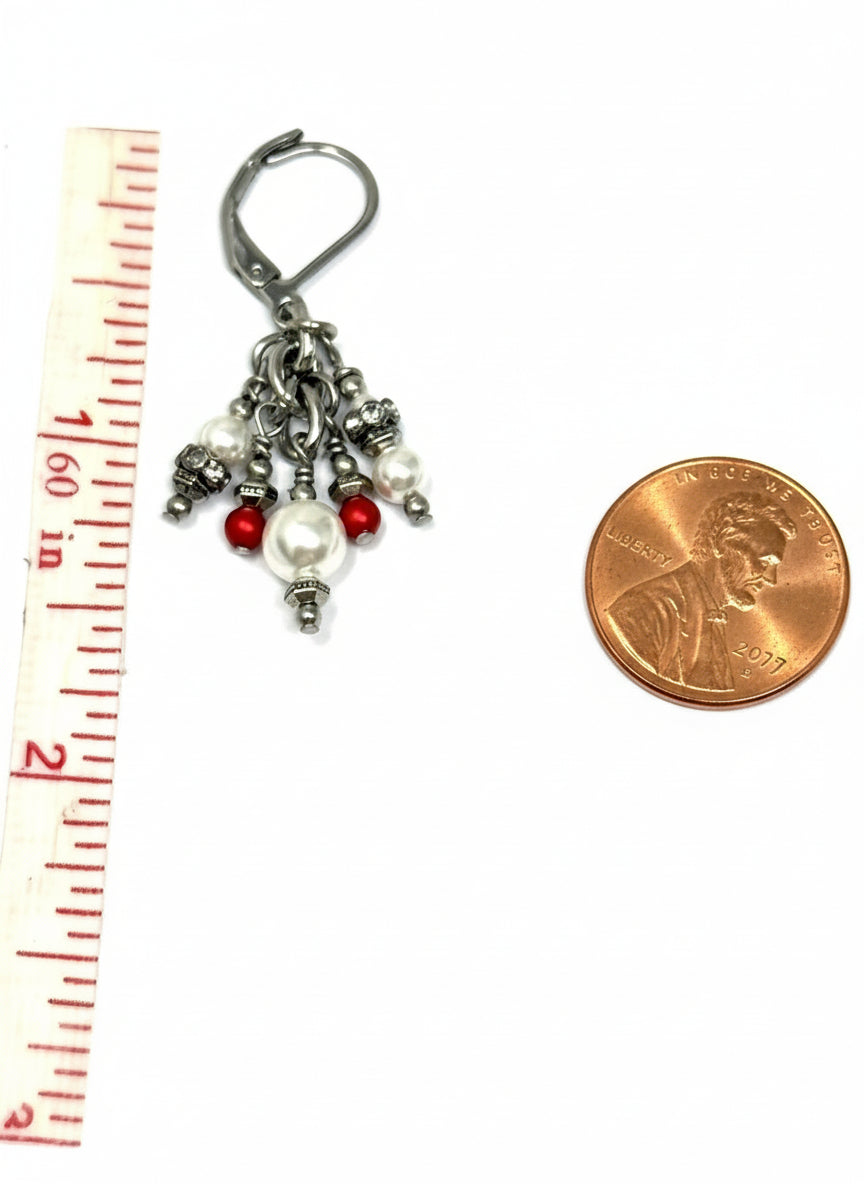 Red and White Swarovski Pearl Beaded Dangle Earrings #2710E