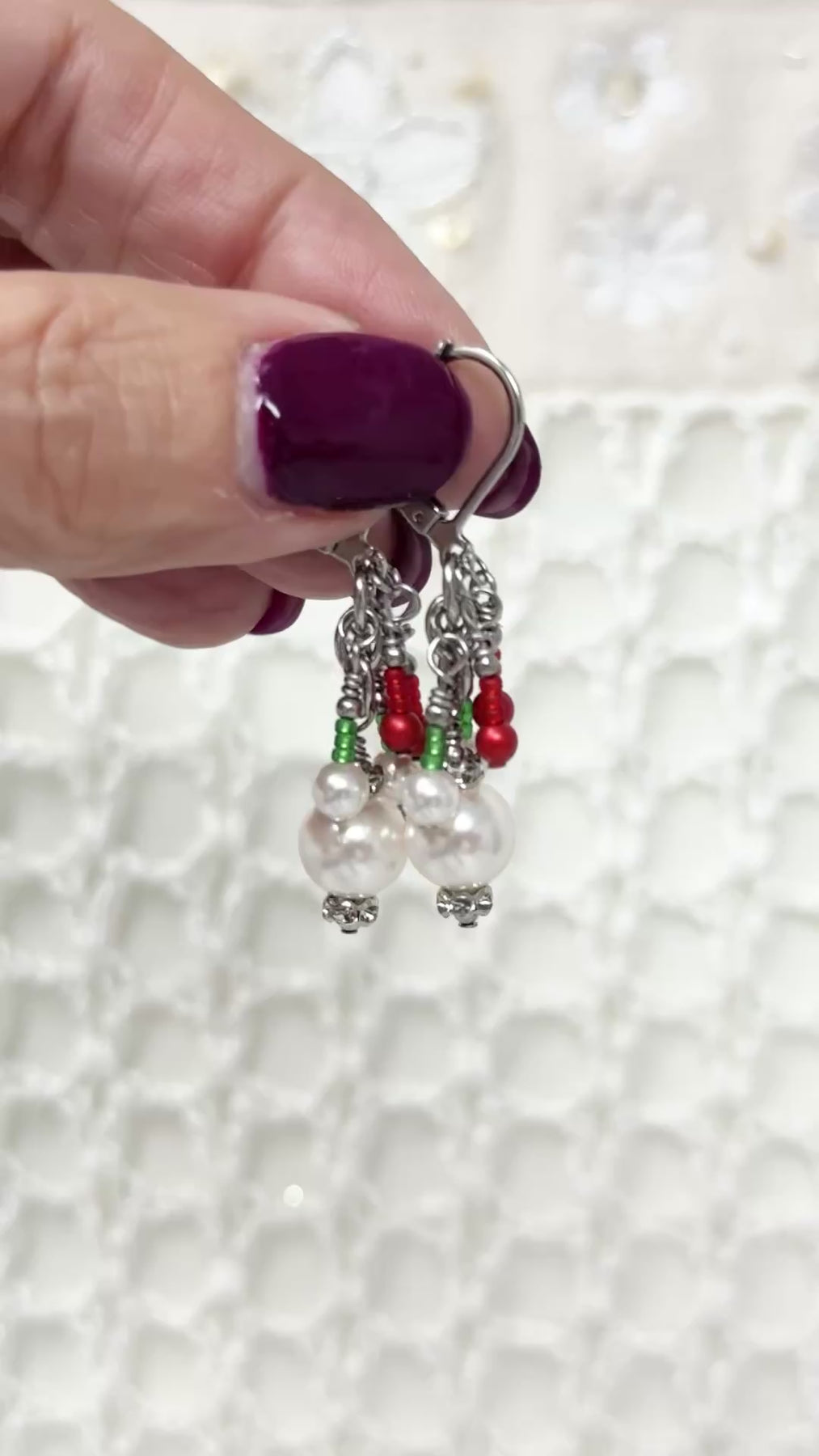 "These pearl earrings are absolutely perfect for the holidays! The white Swarovski pearls are so elegant, and the red and green seed beads add just the right festive touch without being over the top. I love that they're lightweight enough to wear all day at holiday parties, and the leverback closures keep them secure. They dress up everything from my casual sweaters to my holiday party dress!"