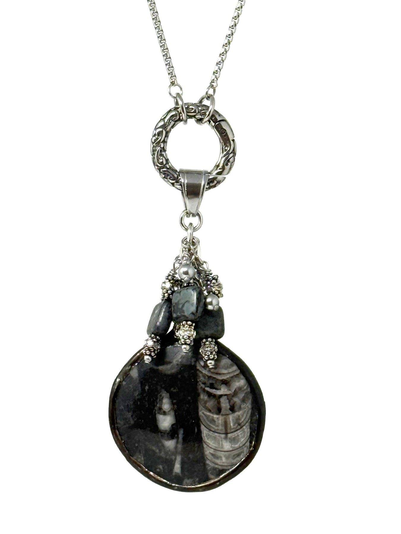 Boho Black & Gray Agate Pendant | Unique Artisan Jewelry #8344D