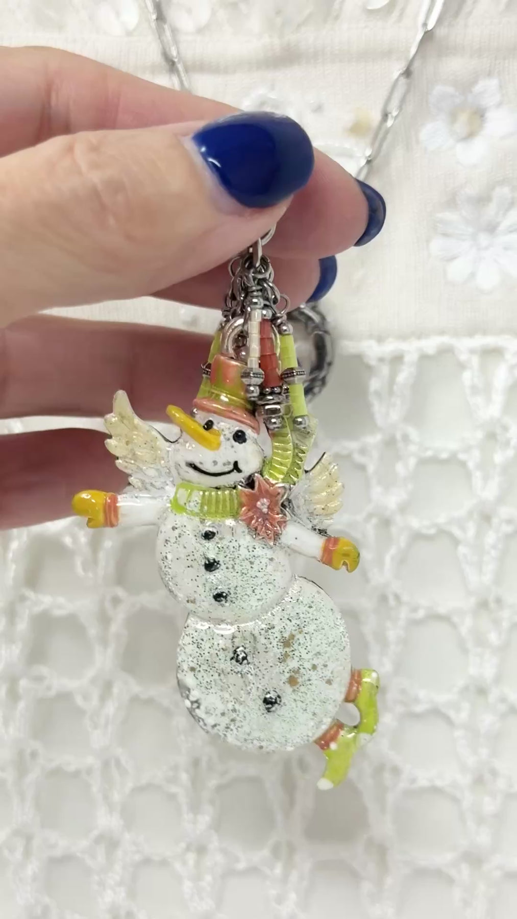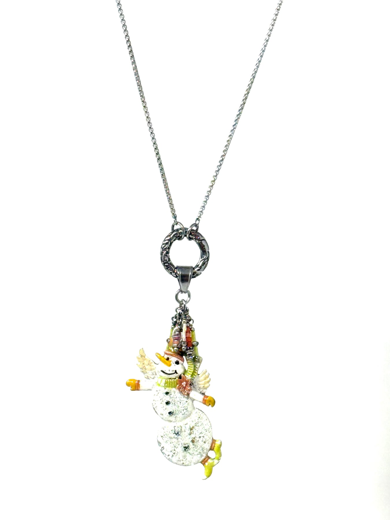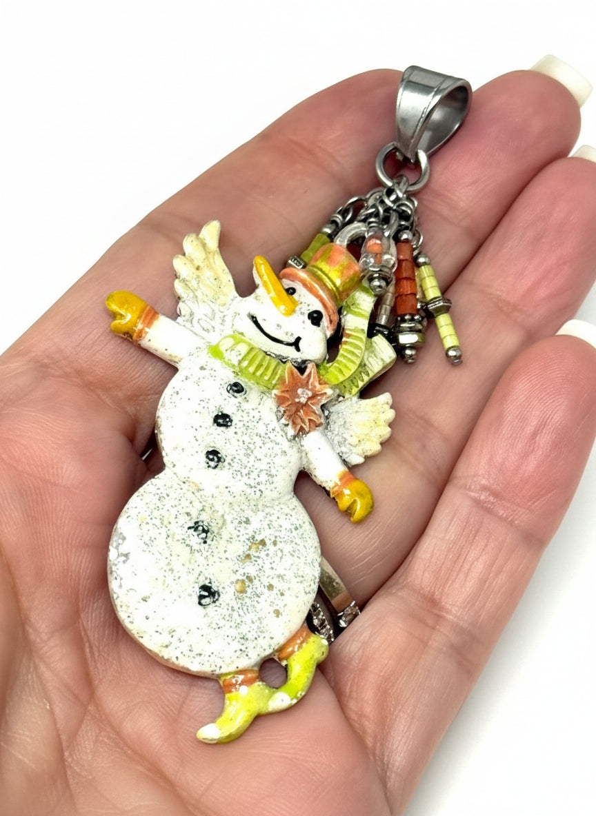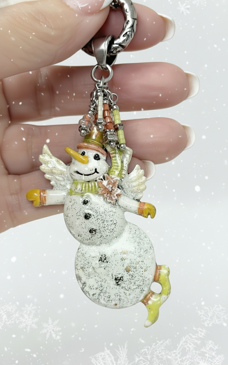 Focal Gemstone: Features a handmade copper enamel focal bead in pale green, orange and white with a dancing snow angel design