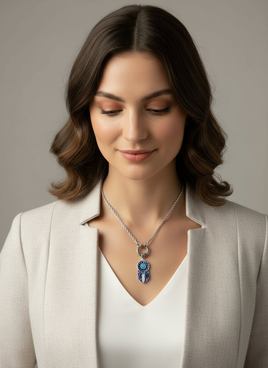 Handmade Blue Floral Daisy Austrian Crystal Necklace. Its eye-catching design makes it perfect for everyday wear, allowing you to express your unique style. The best part is that you can easily switch the pendant to match any outfit or occasion—how fun is that? Elevate your accessory game and make a statement with this beautiful piece! It also makes a wonderful gift for yourself or someone special!