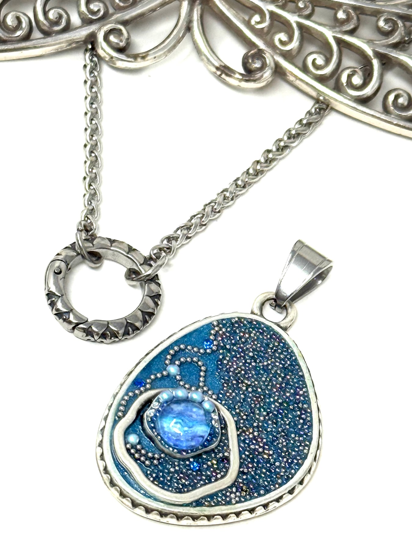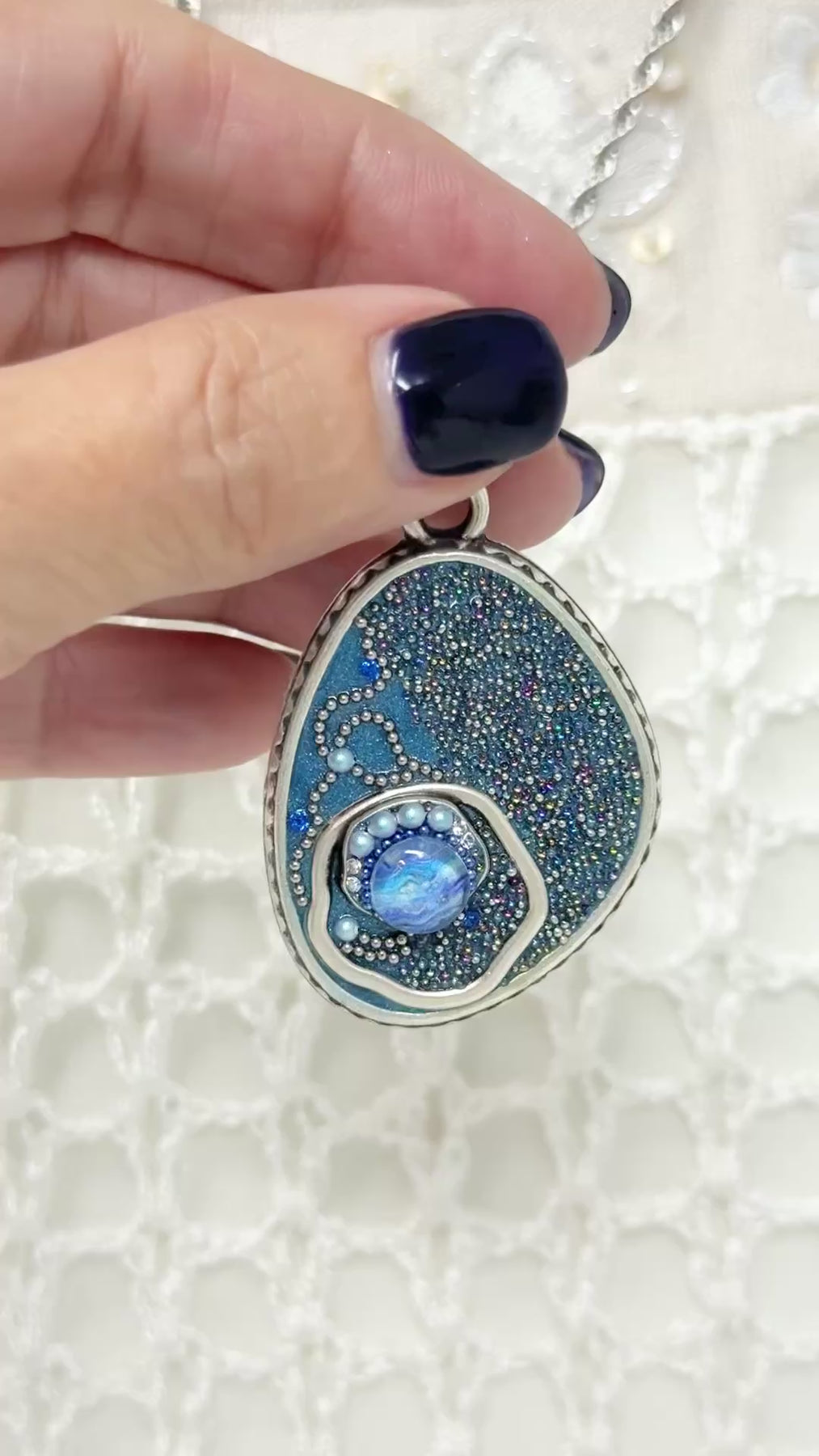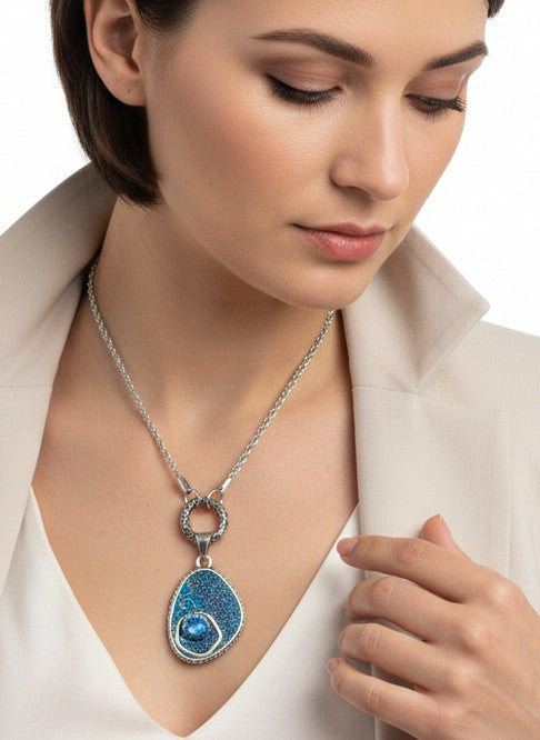 Add this pretty Handmade Blue Pearl Shimmer Beaded Pendant Necklace to your jewelry collection today.