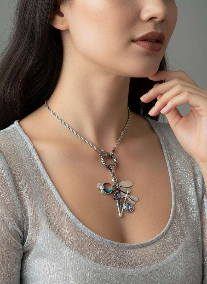 "This dragonfly pendant is absolutely magical! The combination of Swarovski crystals and Czech glass creates such beautiful sparkle and depth. The dragonfly design is so delicate and whimsical—it's like wearing a piece of nature. I get compliments every single time I wear it!"
