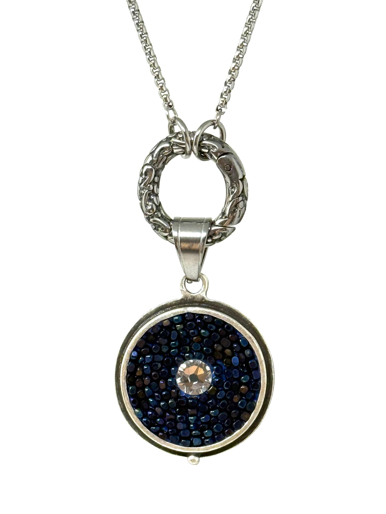 Attachment: Includes a large stainless steel bail for easy attachment to any Stainless Steel chain you choose.