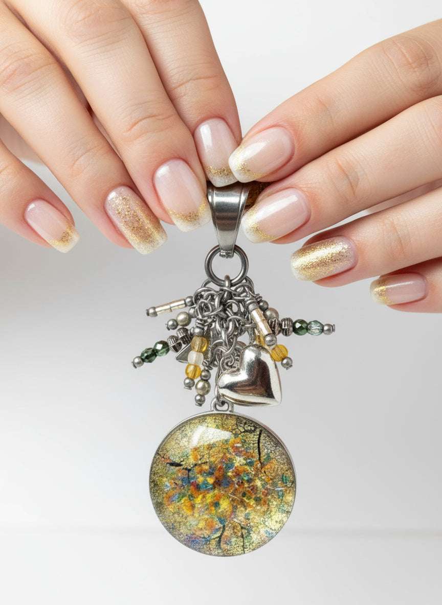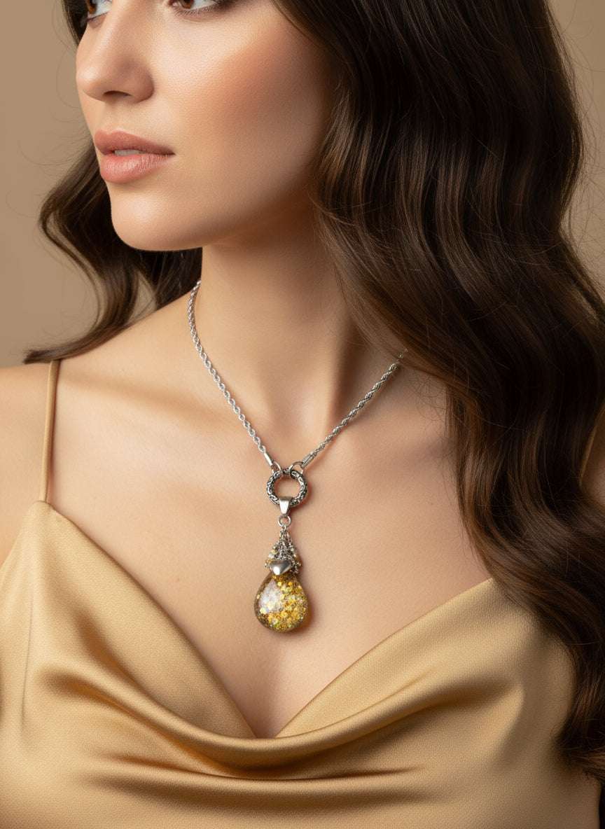 I use high-quality Stainless Steel chains and set every pendant with industrial-strength Apoxie cement to ensure your piece is tarnish-resistant and water-resistant. This jewelry is designed for your life! I stand behind every piece I make. See my Designer's Secret Care Guide for easy cleaning tips (linked in the FAQs).