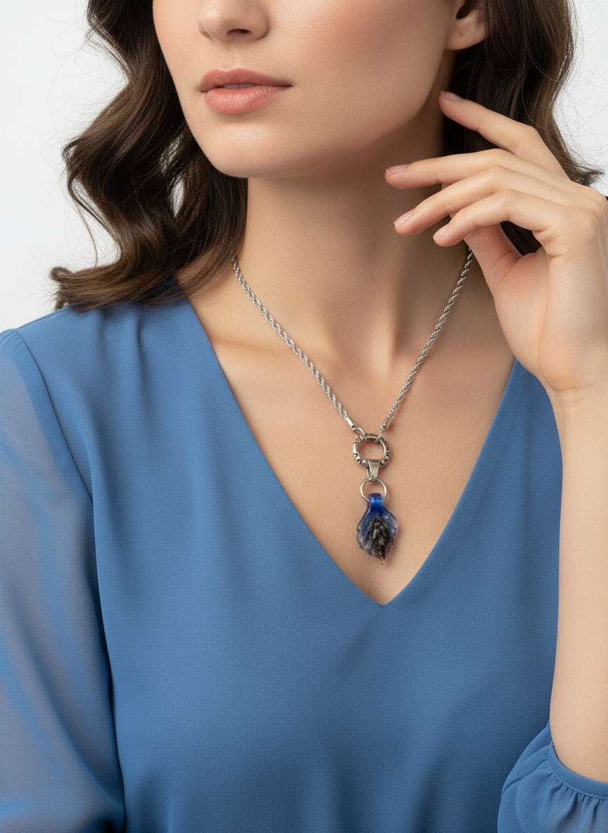 I use high-quality Stainless Steel chains and set every pendant with industrial-strength Apoxie cement to ensure your piece is tarnish-resistant and water-resistant. This jewelry is designed for your life! I stand behind every piece I make. See my Designer's Secret Care Guide for easy cleaning tips (linked in the FAQs).
