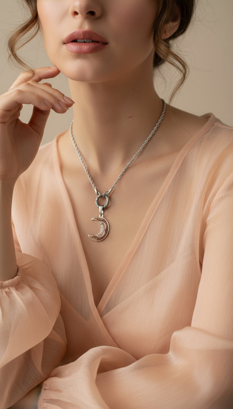 Add this pretty Handmade Mosaic Crescent Moon Beaded Pendant Necklace to your jewelry collection today.