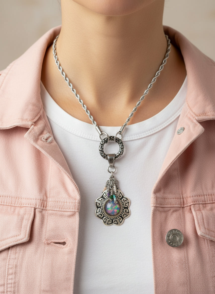 This Handmade Opal Shimmer Beaded Pendant Necklace features a striking design, making it ideal for daily wear and a great way to showcase your personal style. Plus, you can effortlessly swap the pendant to suit any outfit or event—how enjoyable is that? Enhance your jewelry collection and stand out with this gorgeous piece! It also serves as a lovely gift for yourself or someone special. Start enjoying mixing and matching your pendants using just one chain.