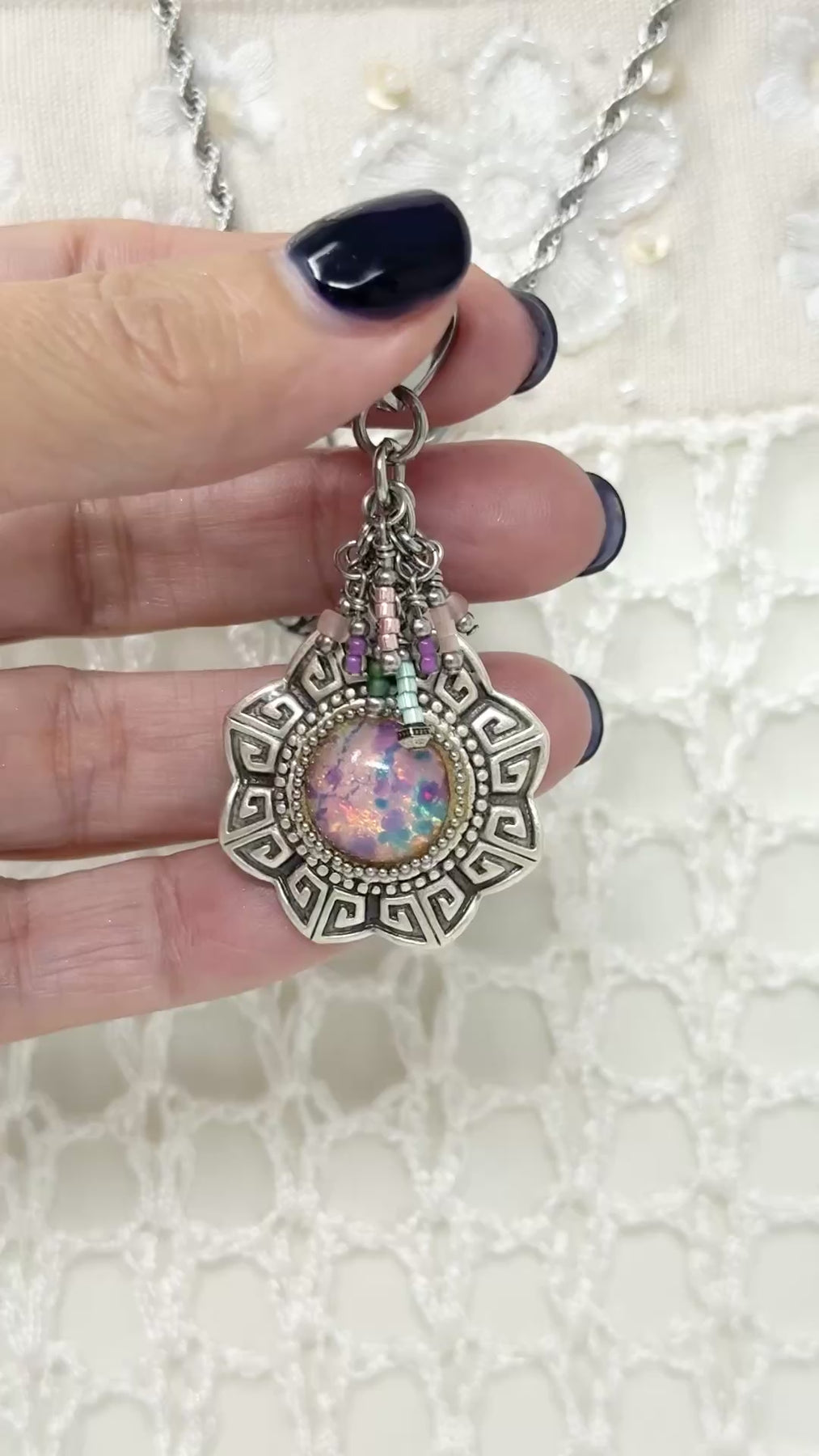 Add this pretty Handmade Opal Shimmer Beaded Pendant Necklace to your jewelry collection today.