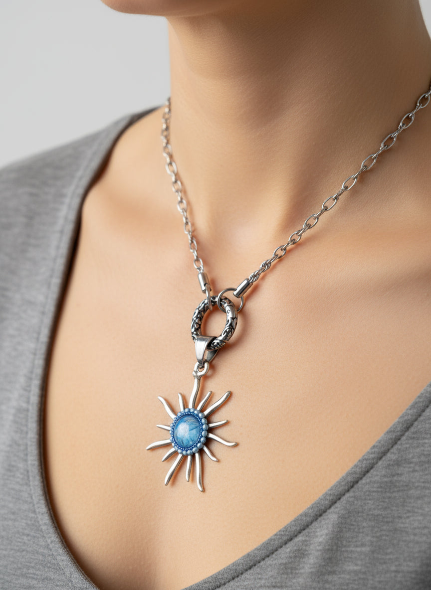 This Handmade Pearl Blue Sun Pendant Necklace features a striking design, making it ideal for daily wear and a great way to showcase your personal style. Plus, you can effortlessly swap the pendant to suit any outfit or event—how enjoyable is that? Enhance your jewelry collection and stand out with this gorgeous piece! It also serves as a lovely gift for yourself or someone special.