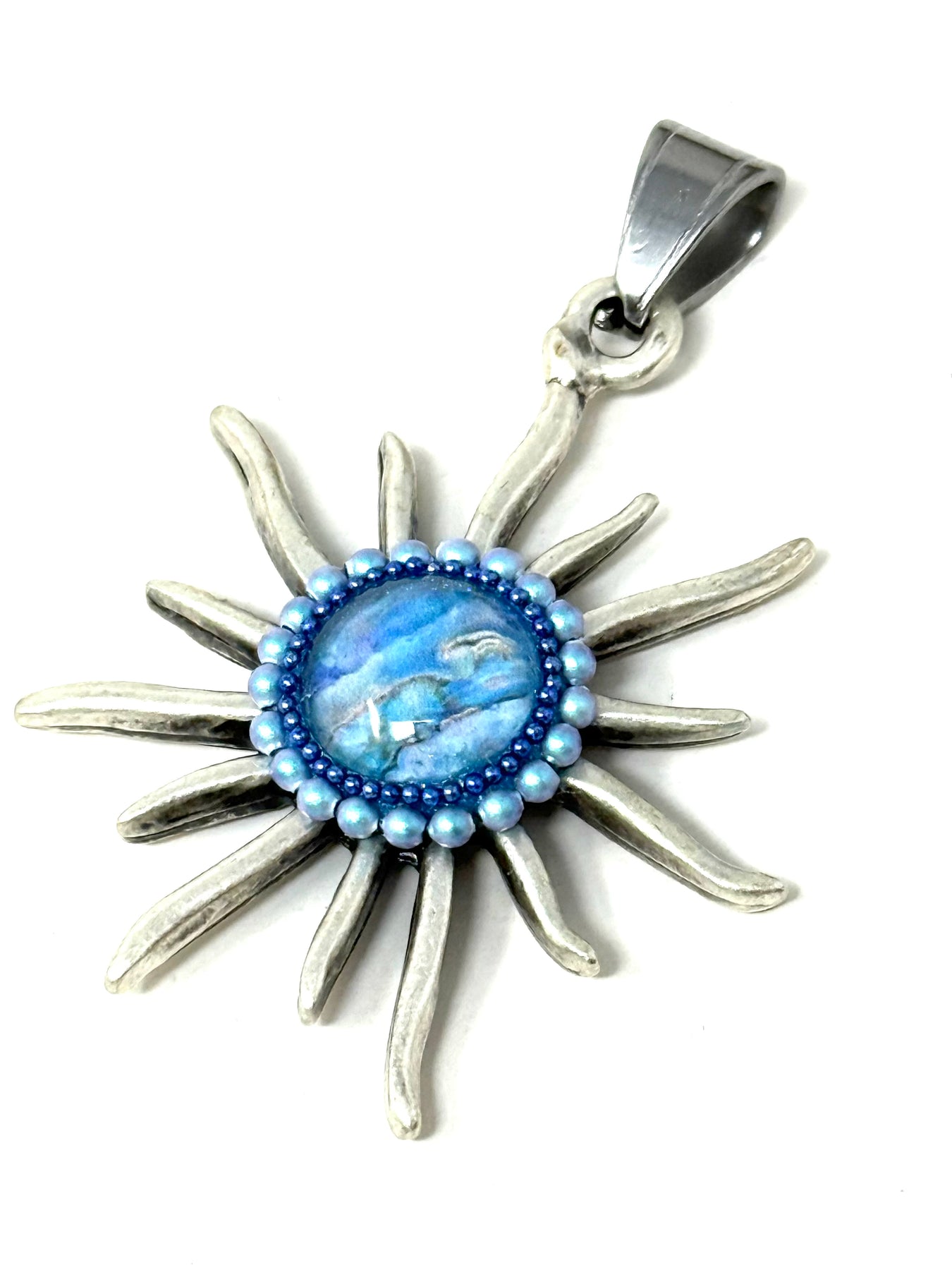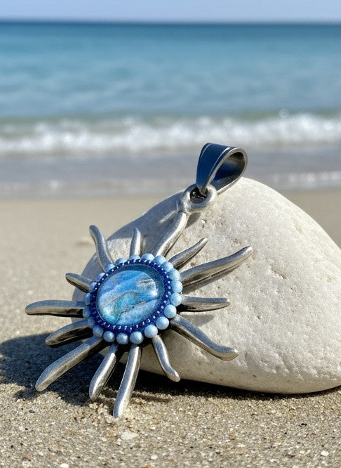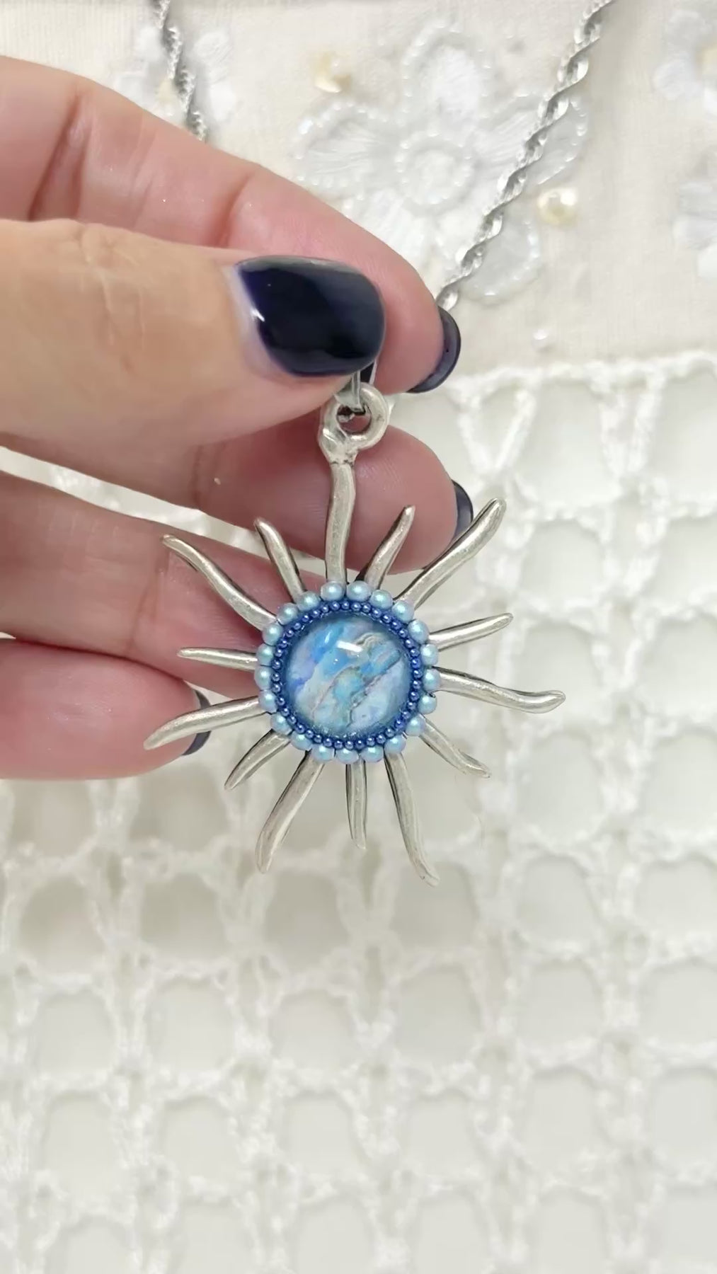 Add this pretty Handmade Pearl Blue Sun Pendant Necklace to your jewelry collection today.