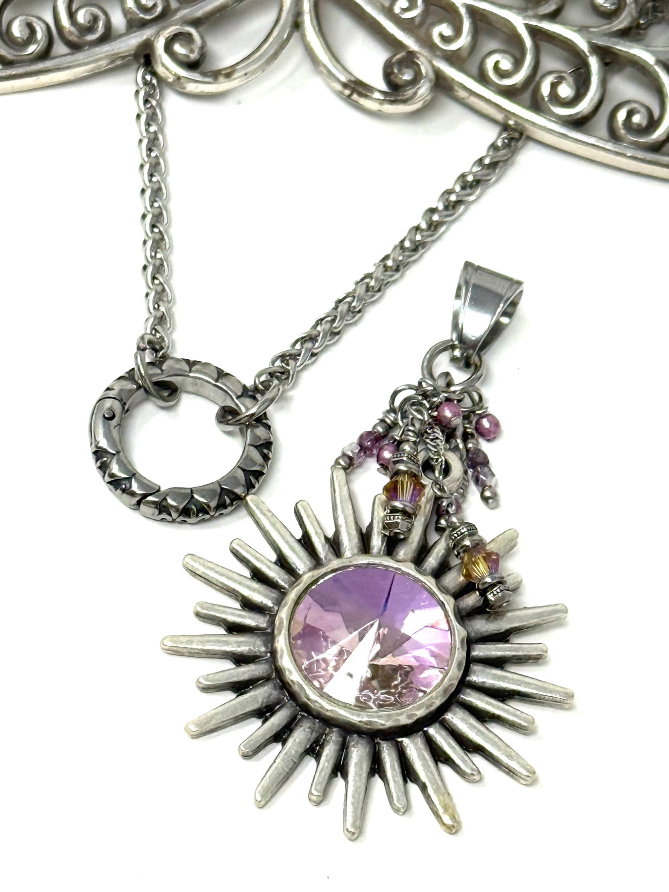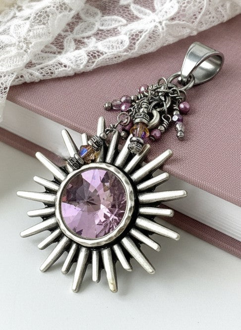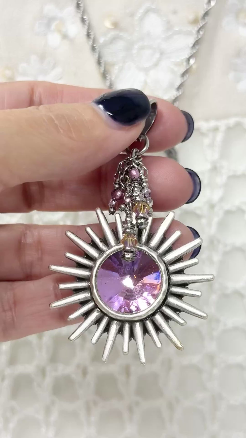 Add this pretty Handmade Pink Crystal Sun Beaded Pendant Necklace to your jewelry collection today.