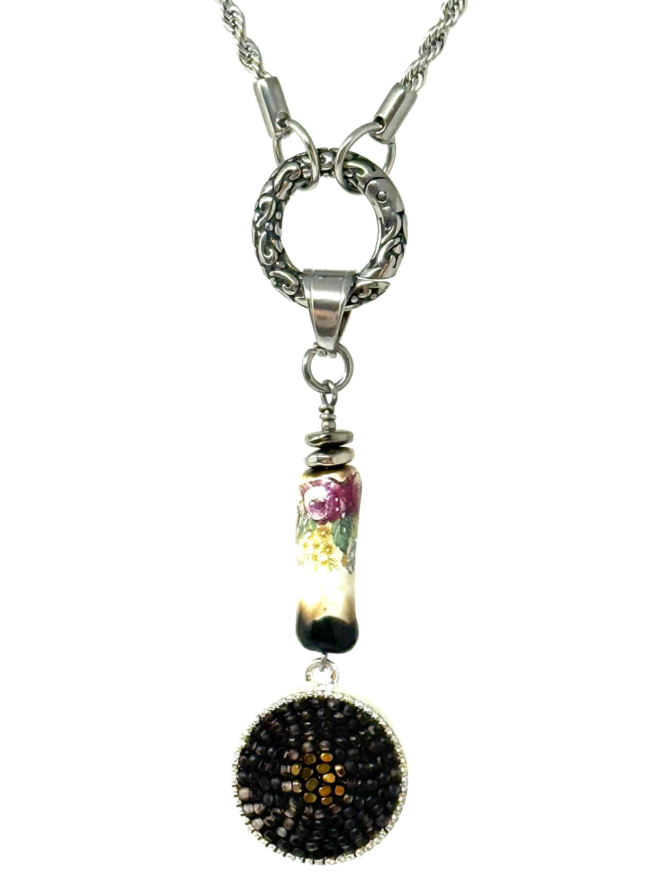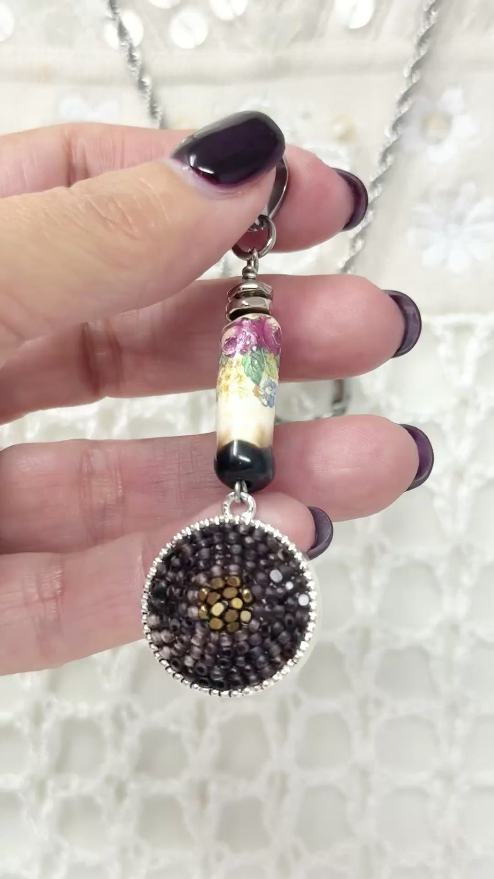 Add this pretty Handmade Porcelain Victorian Floral Mosaic Beaded Pendant to your jewelry collection today.