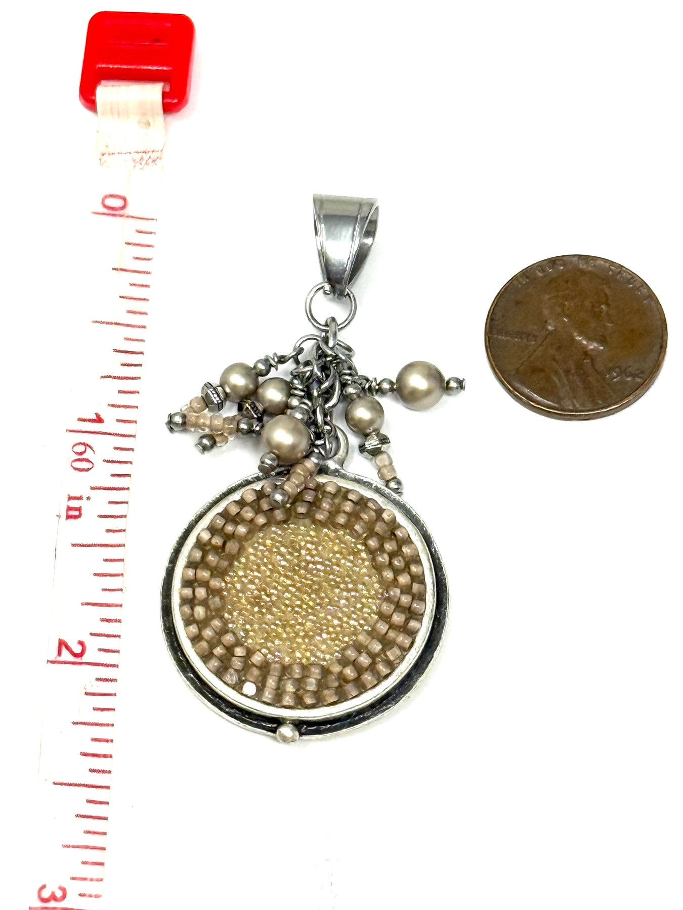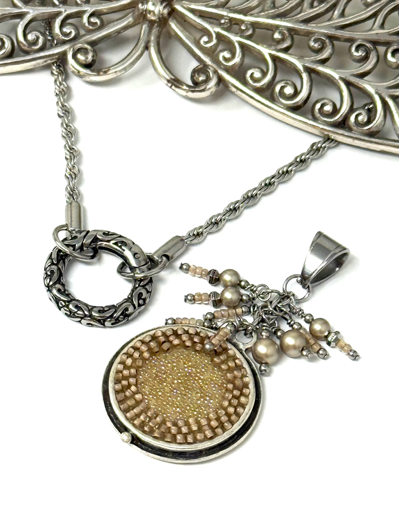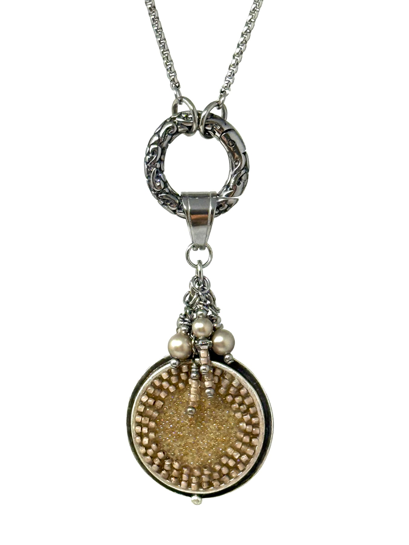 Handmade Golden Beige Pearl & Seed Bead Cascade Pendant #8317D