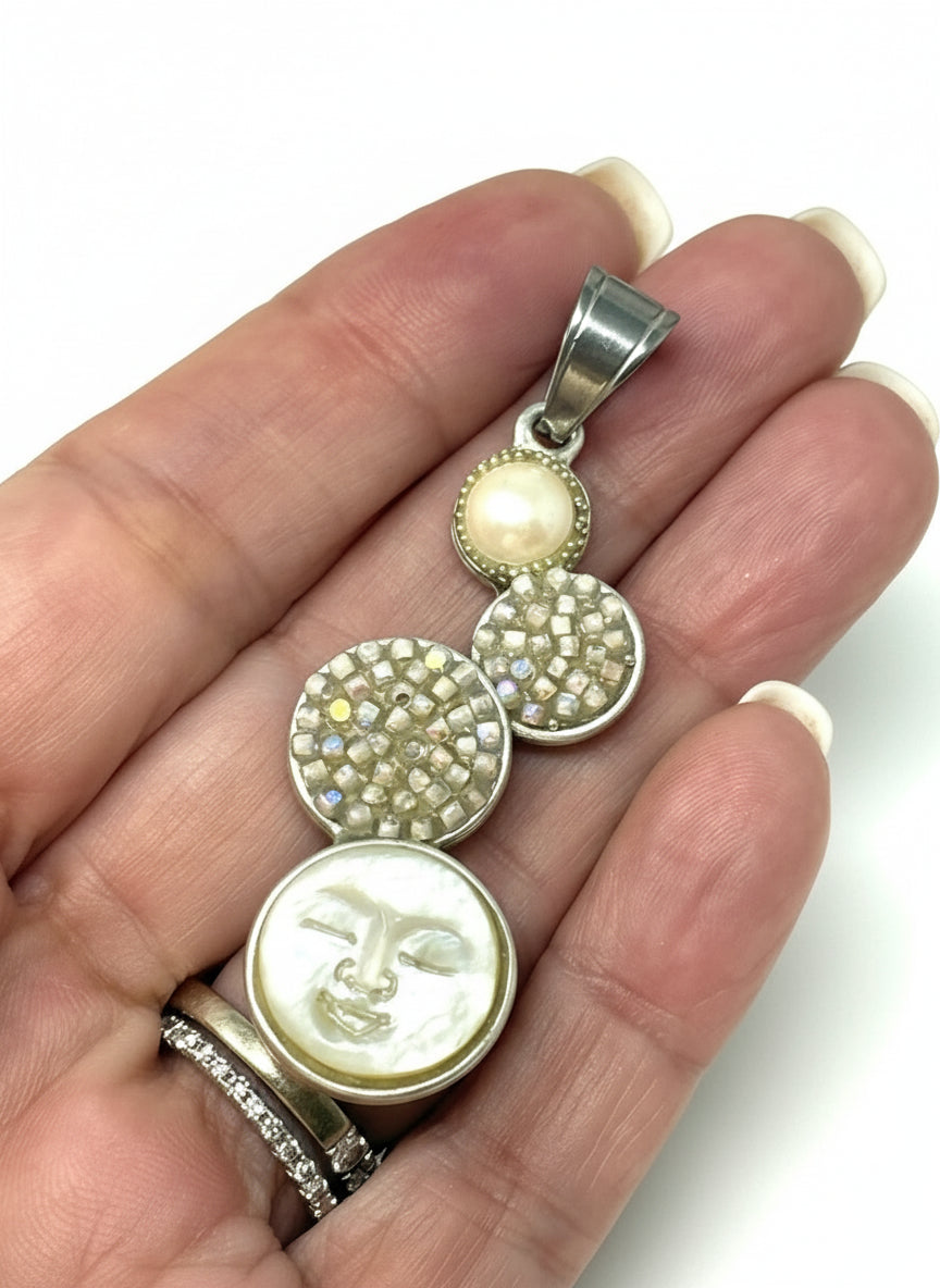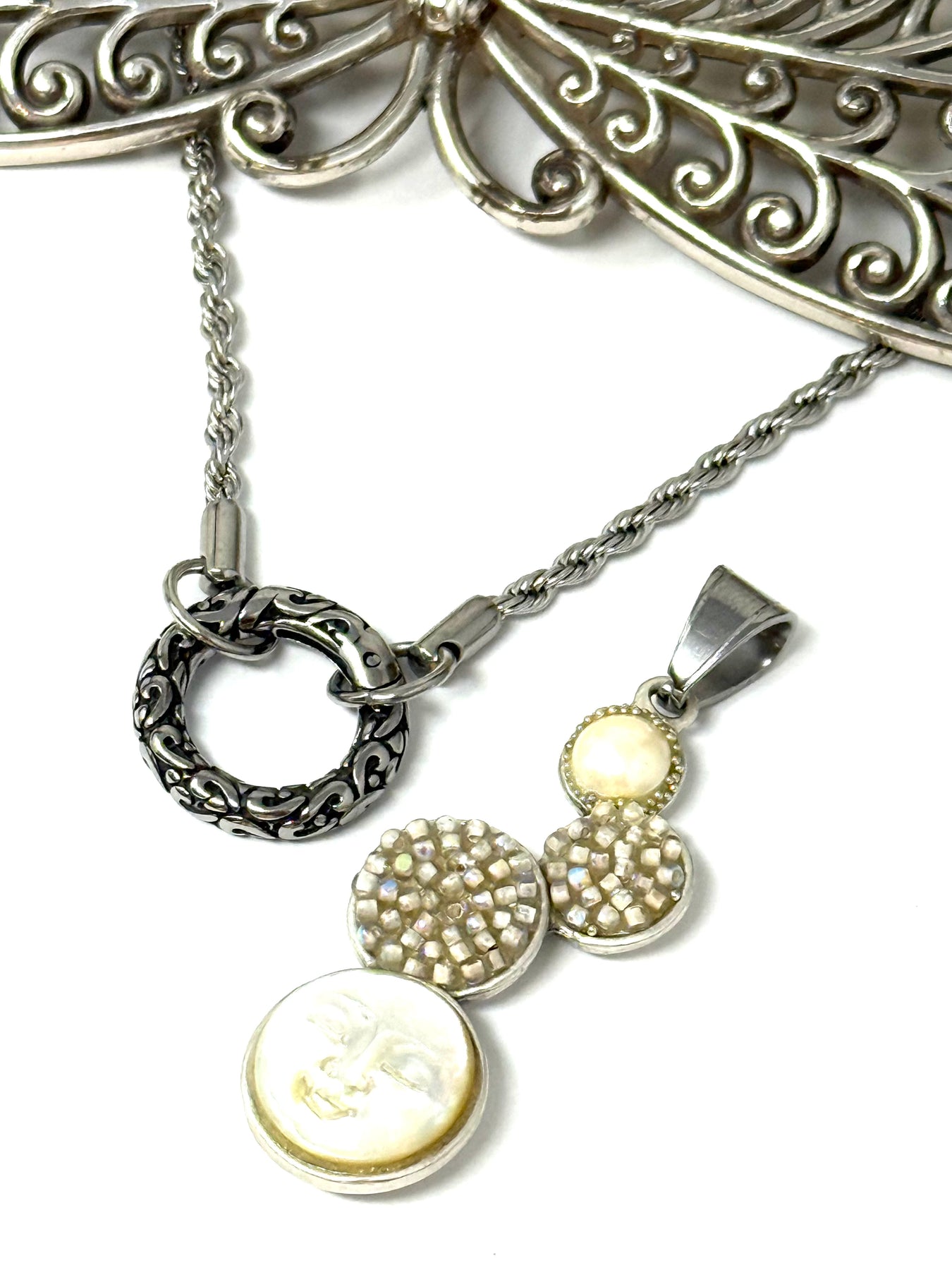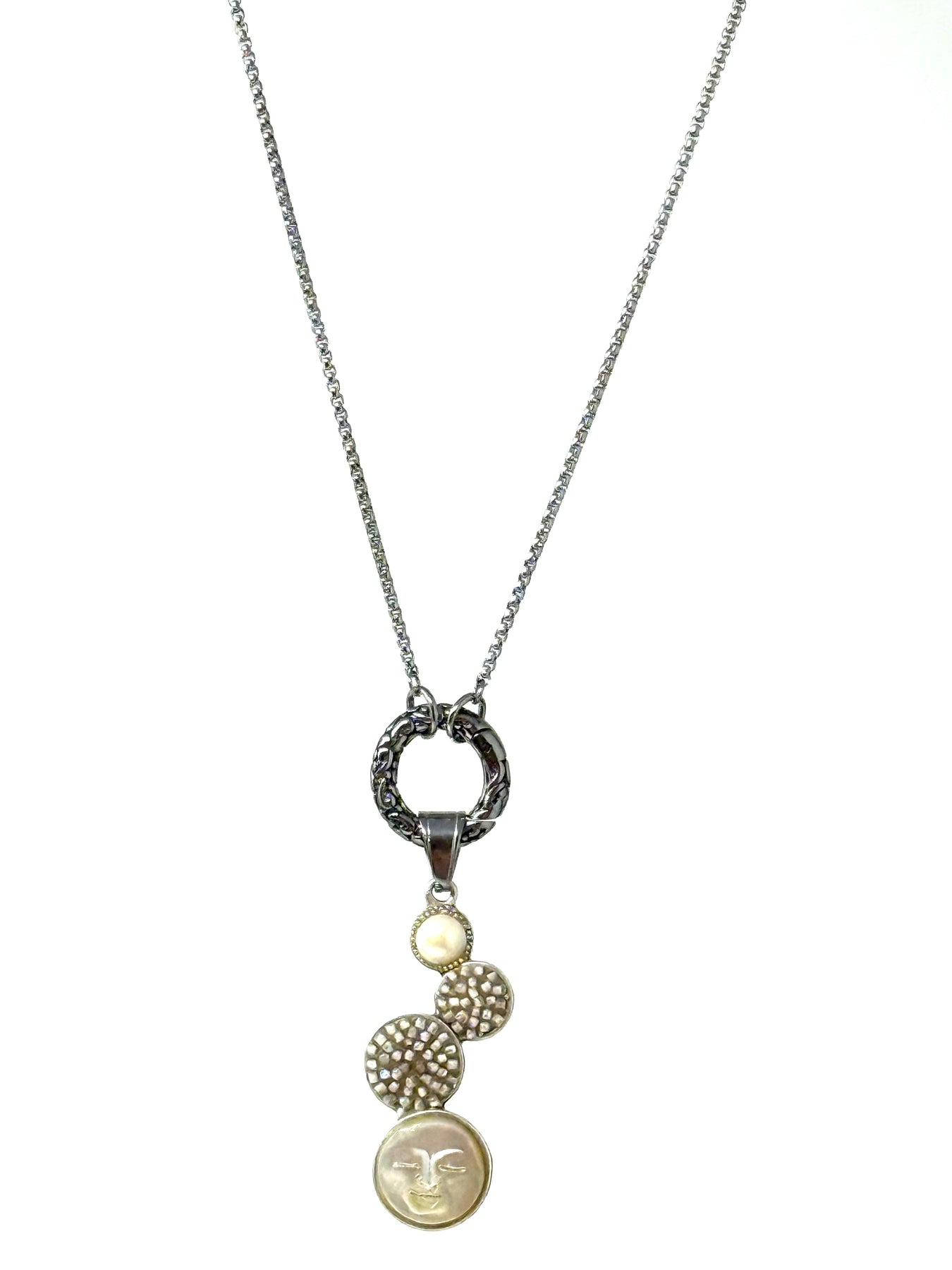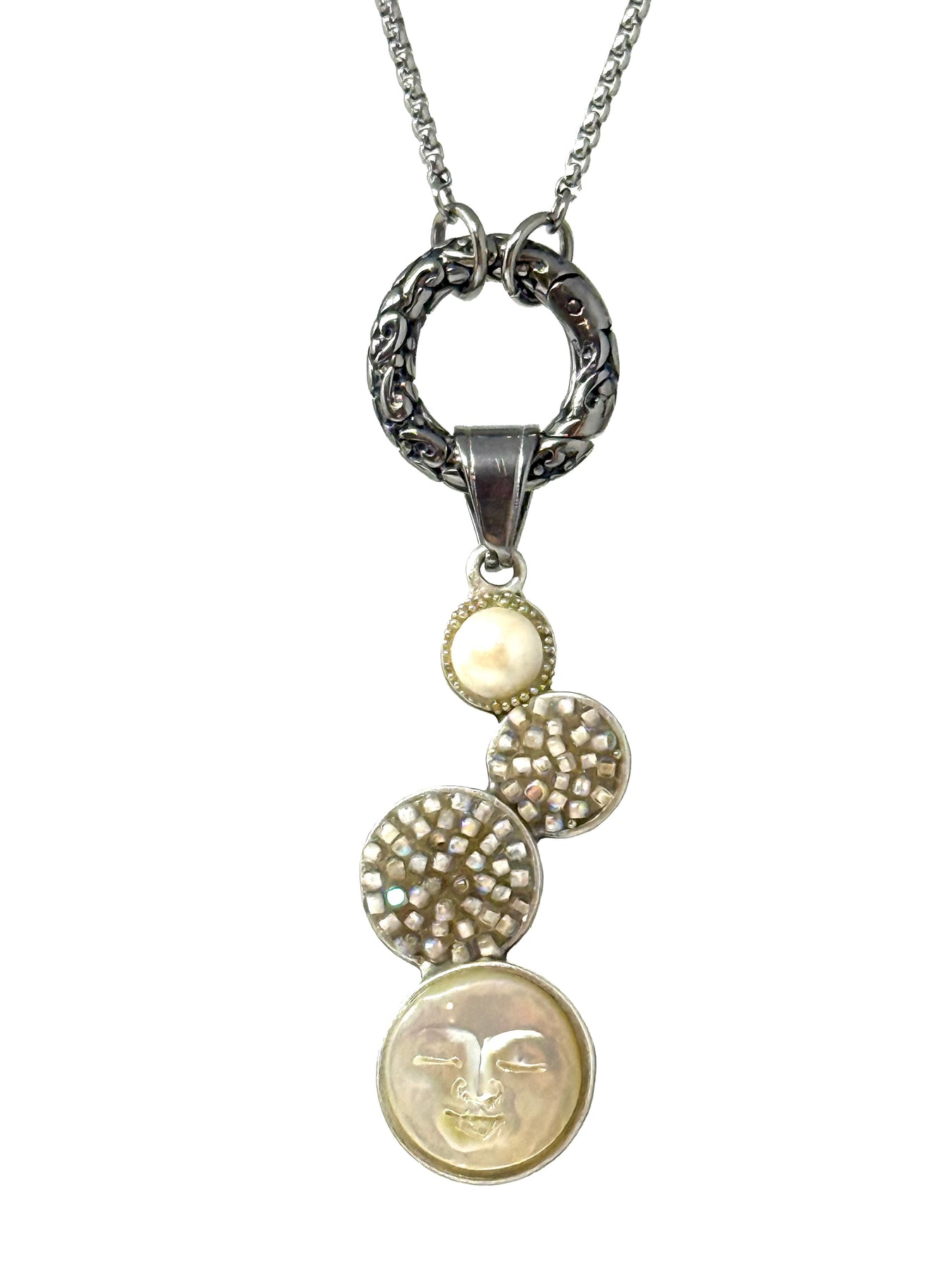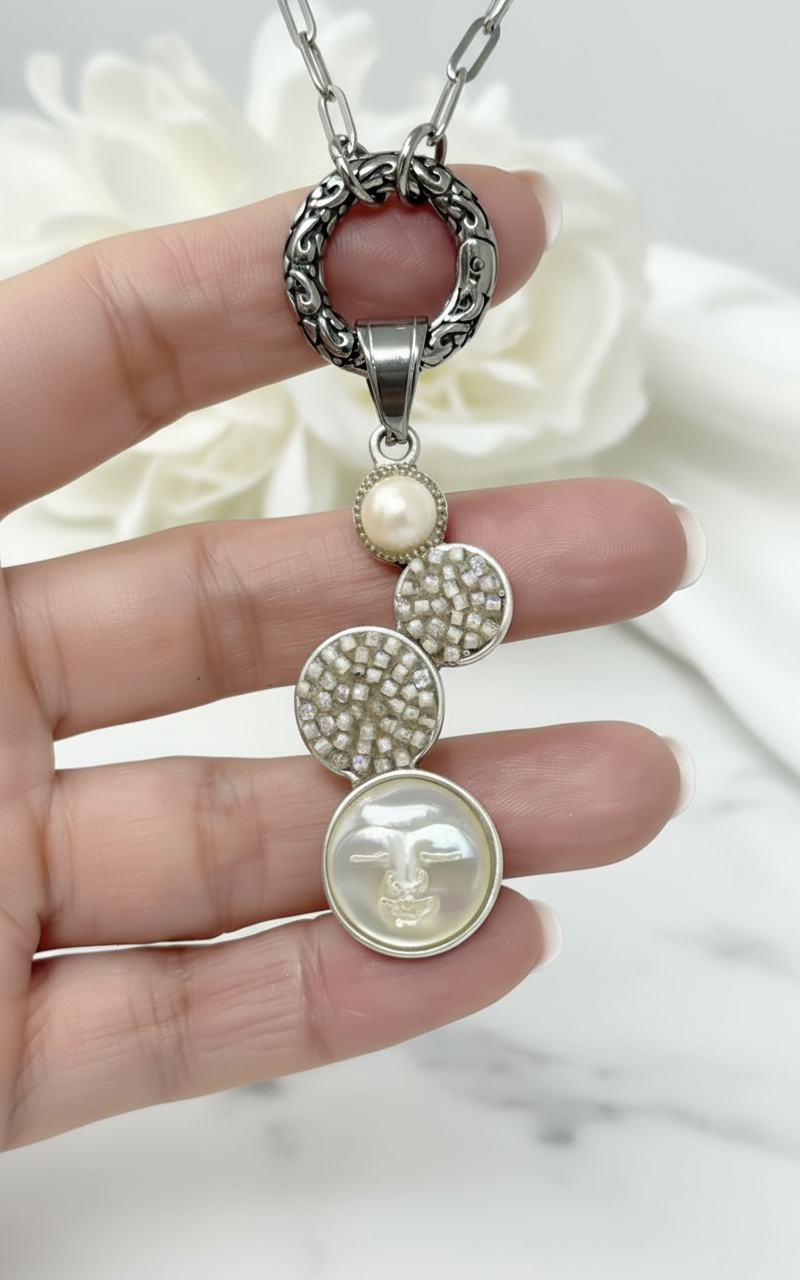 Focal Gemstone: Features a hand-carved Mother of Pearl moon bead with natural iridescence