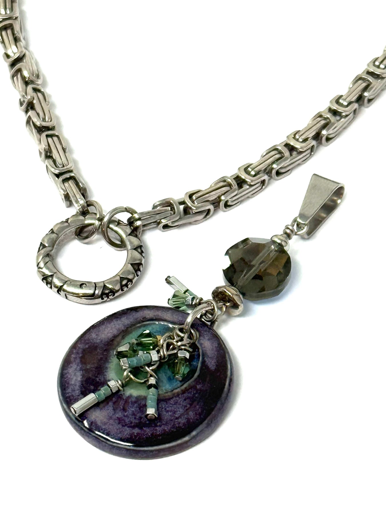 Porcelain Swarovski crystal one-of-a-kind interchangeable beaded pendant necklace with unique pendant design on stainless steel chain - handmade in USA