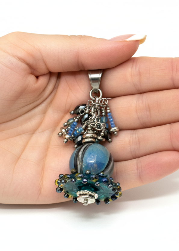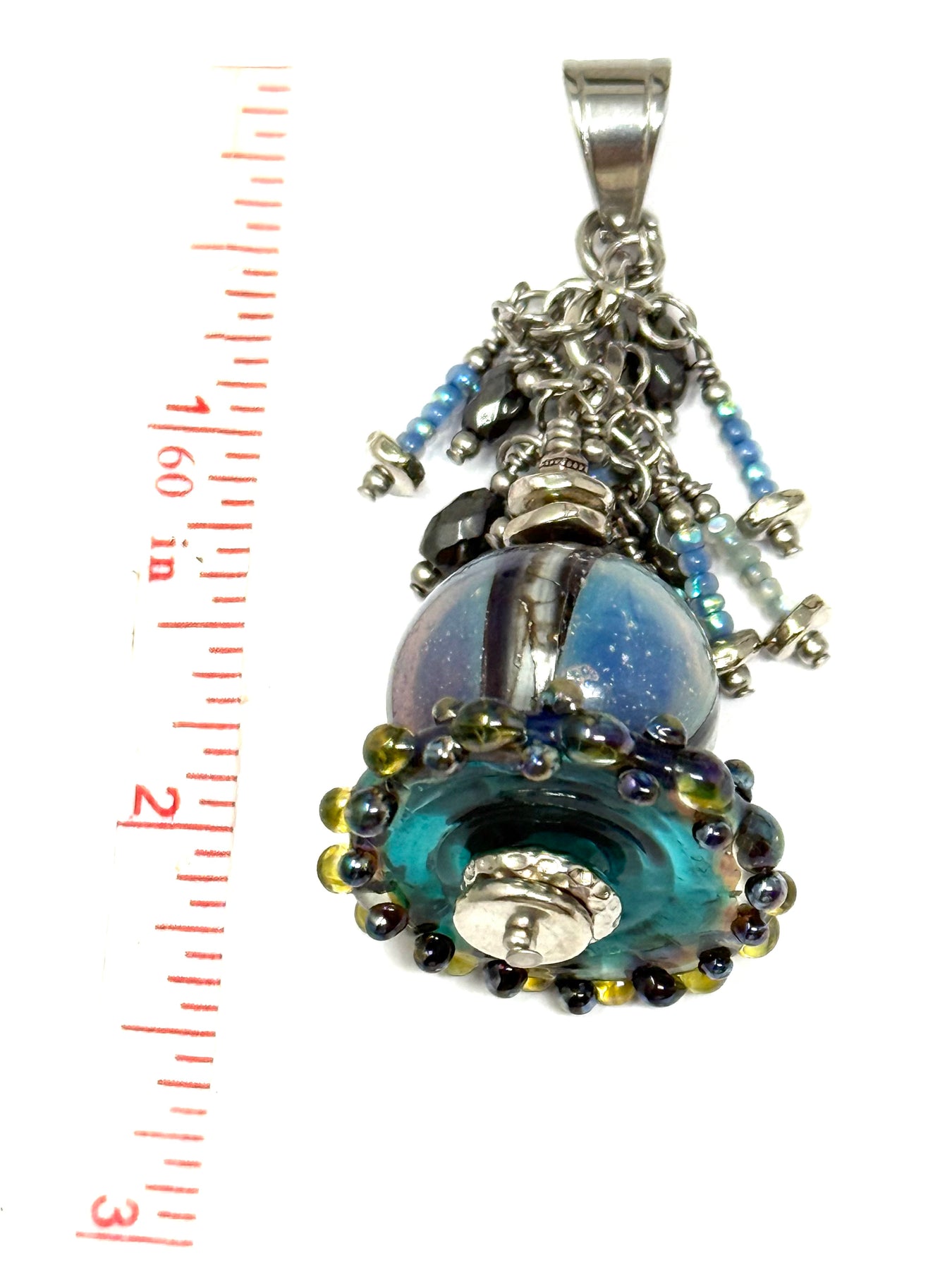 • Dimensions: Lampwork glass focal bead approximately 1" long; total pendant length including bail and cluster approximately 2.5"