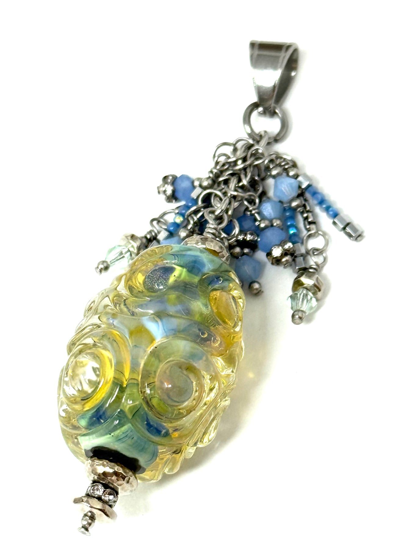 Handmade Lampwork Glass Chunky Beaded Dangle Pendant #8325D