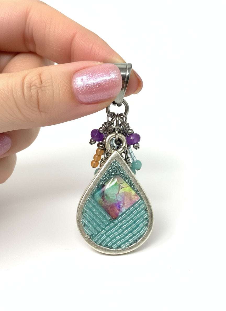 Seed Bead Pendant Pastel Shimmer - Handmade Jewelry #8293D