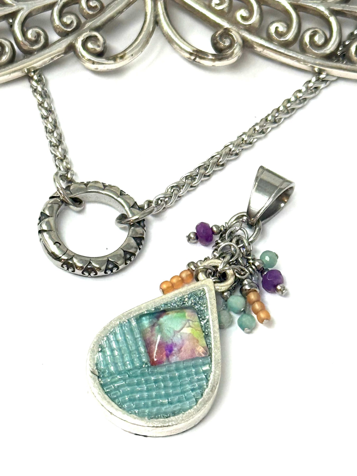 Setting & Bezel: The focal bead is set in an Antique Oxidized Pewter Teardrop Bezel.