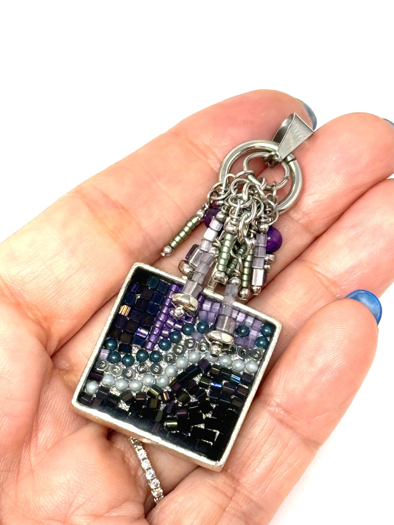 - You'll love your Beautiful Interchangeable Mosaic Purple Seed Bead Pendant