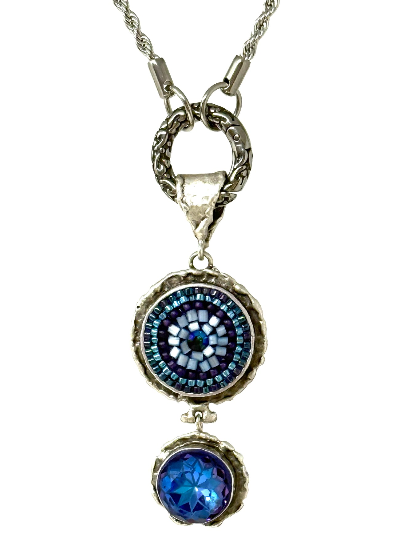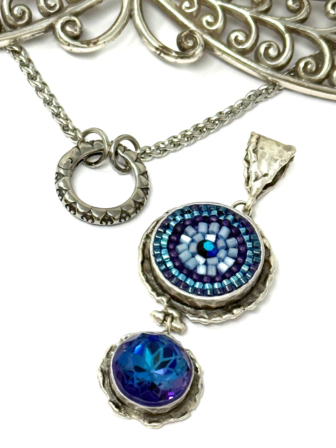 Add this pretty Handmade Blue Mosaic Seed Bead Pendant to your jewelry collection today.