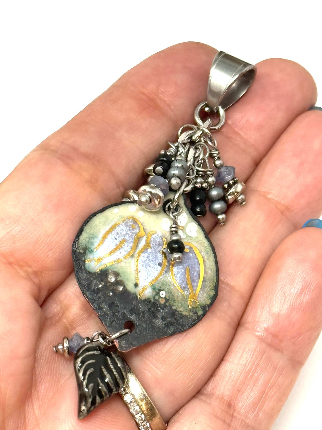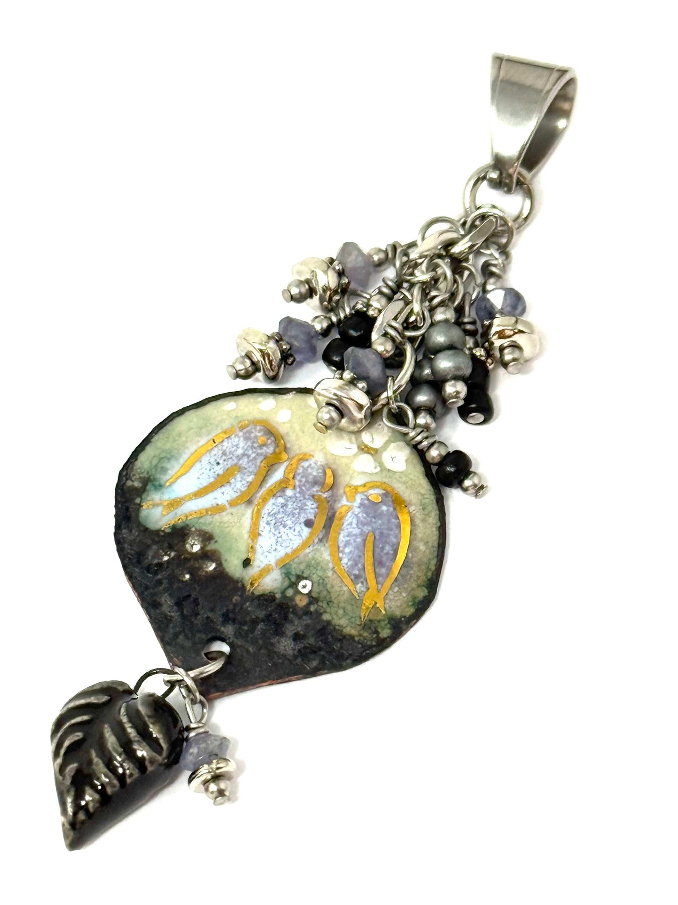 Handmade Copper Enamel Bird Beaded Pendant. Its eye-catching design makes it perfect for everyday wear, allowing you to express your unique style. The best part is that you can easily switch the pendant to match any outfit or occasion—how fun is that? Elevate your accessory game and make a statement with this beautiful piece! It also makes a wonderful gift for yourself or someone special!