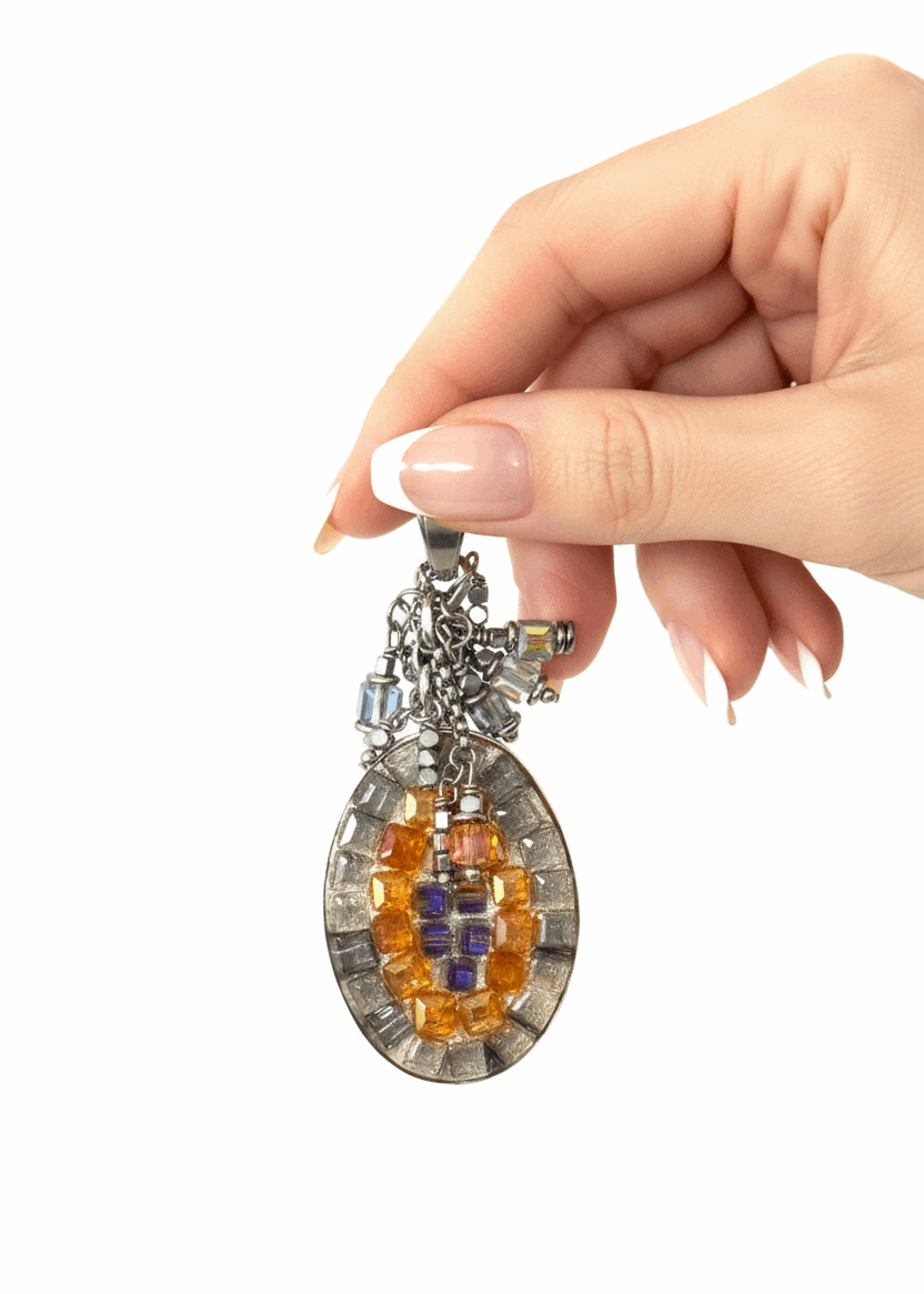 Elegant Crystal Mosaic Oval Pendant | Unique Artisan Jewelry #7022D