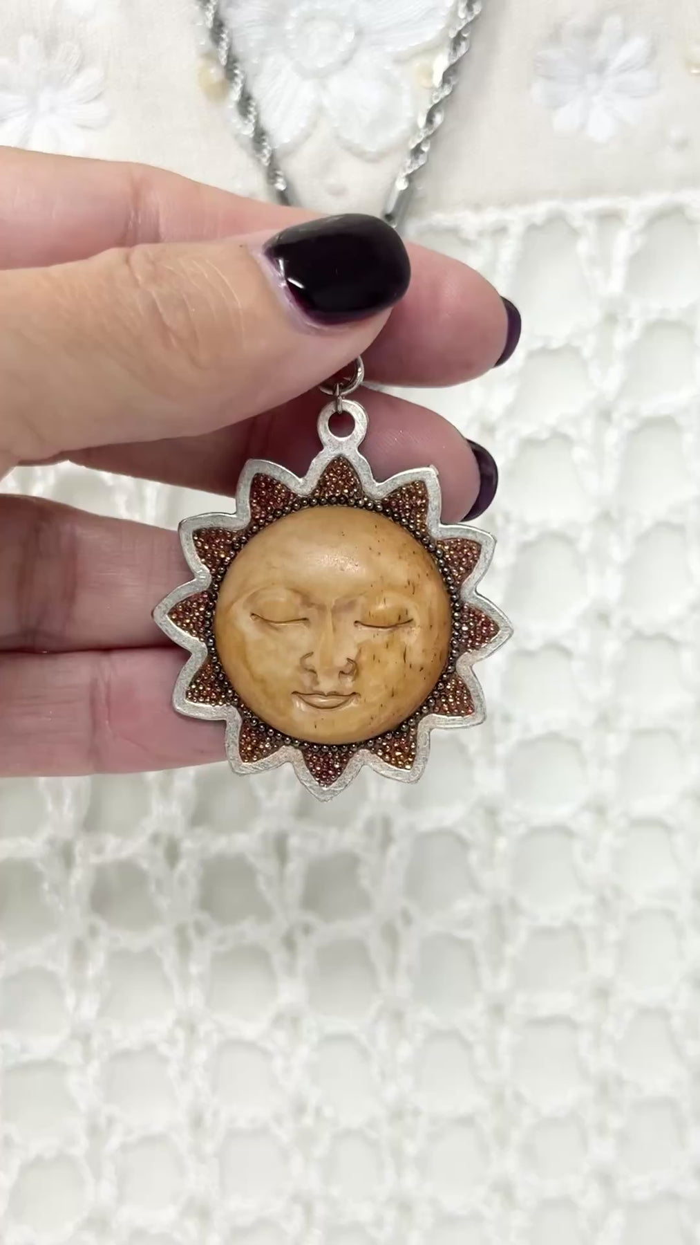 Add this pretty Handmade Hand-Carved Sun Tiny Beaded Pendant Necklace to your jewelry collection today.