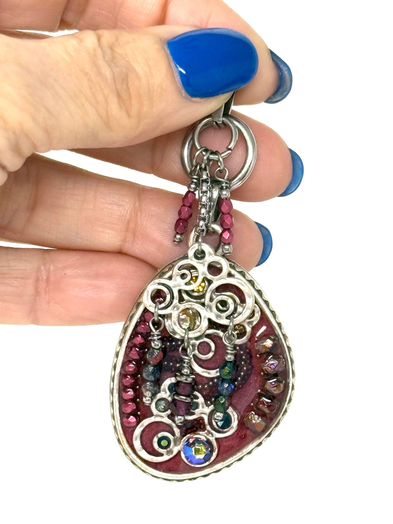 - You'll love your new Handmade Interchangeable Burgundy Fun Boho Pendant