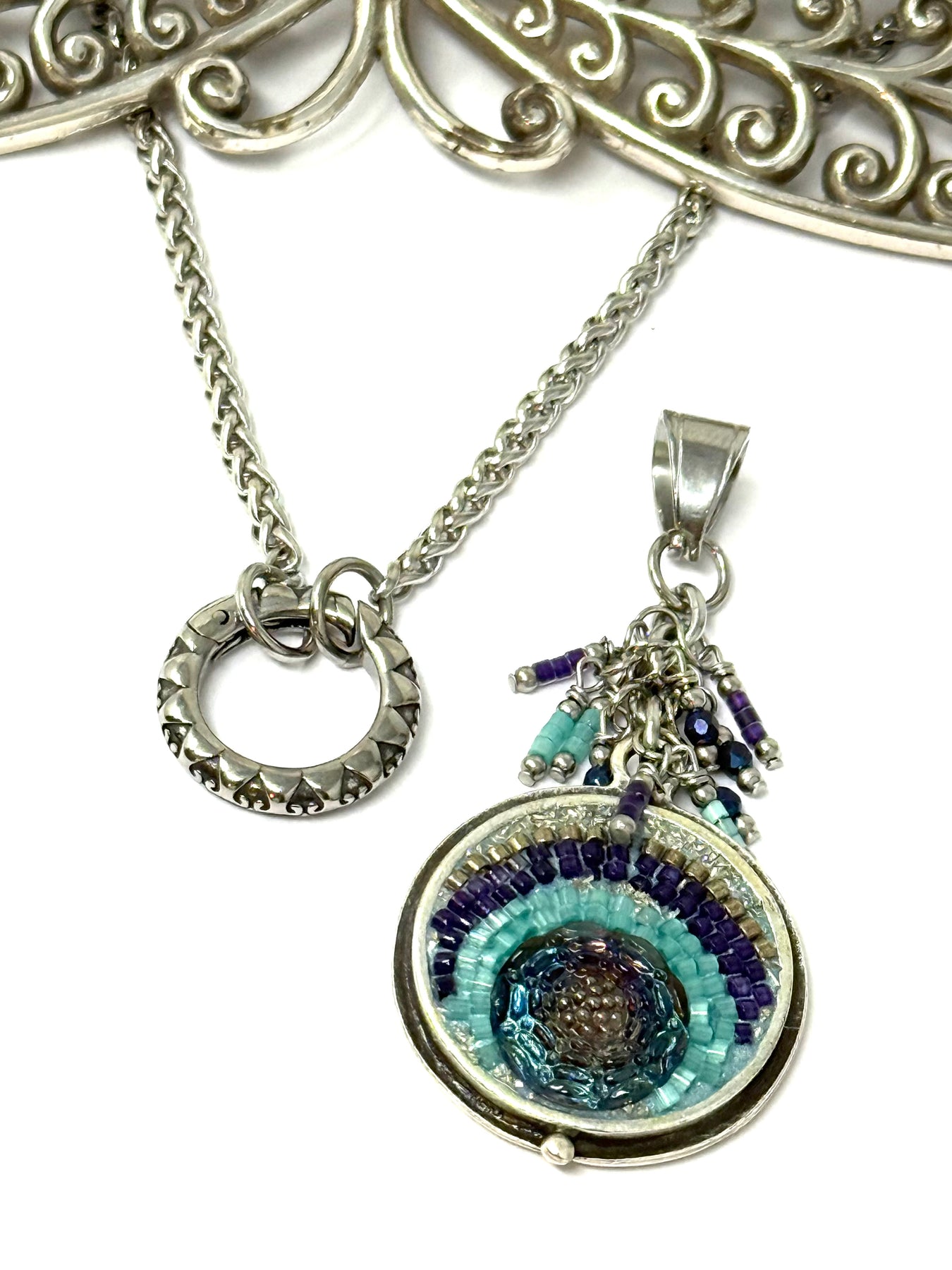 - Add this pretty Handmade Mosaic Seed Bead Pendant Necklace to your jewelry collection today.