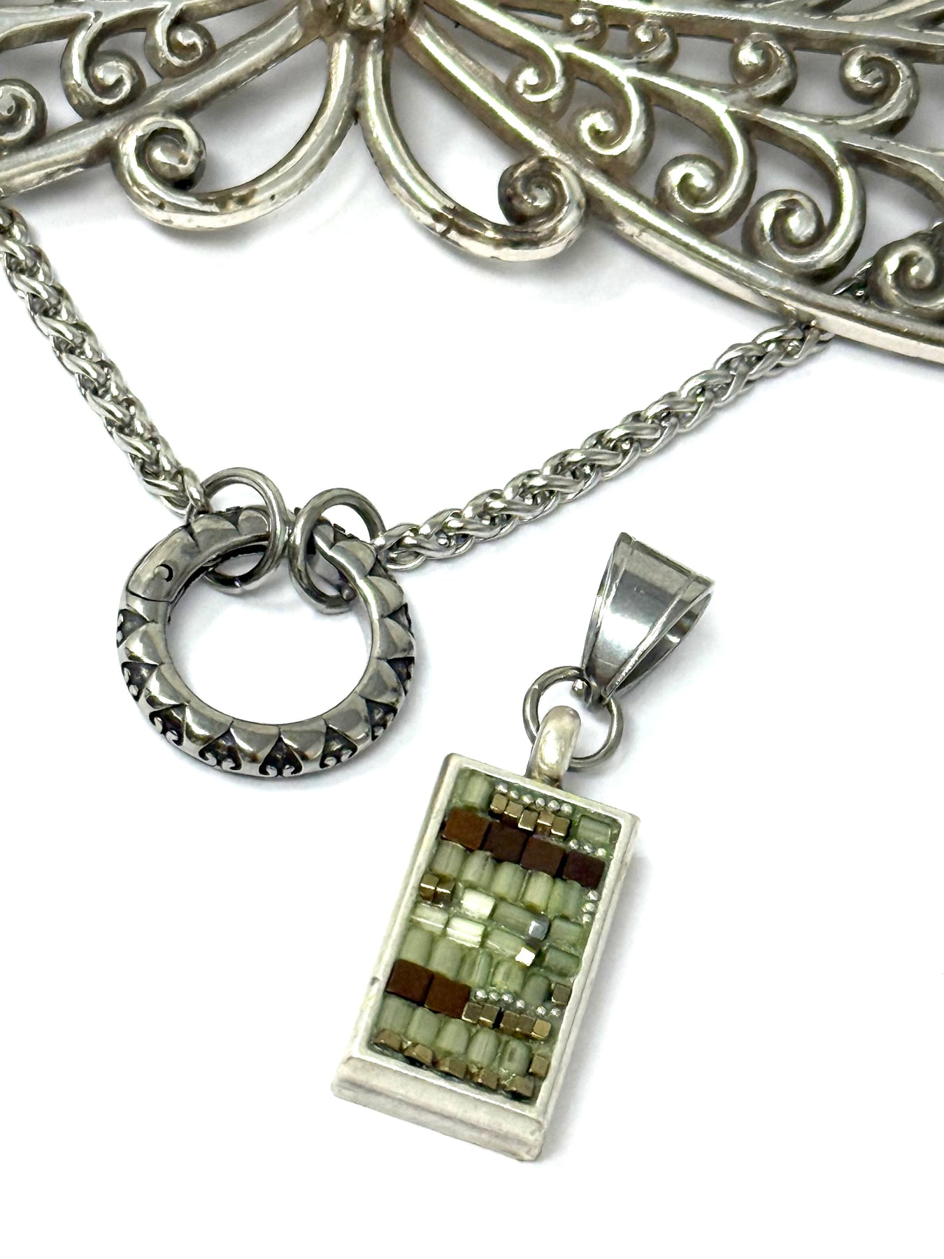 Handmade Mosaic Swirl Seed Bead Pendant #8243D