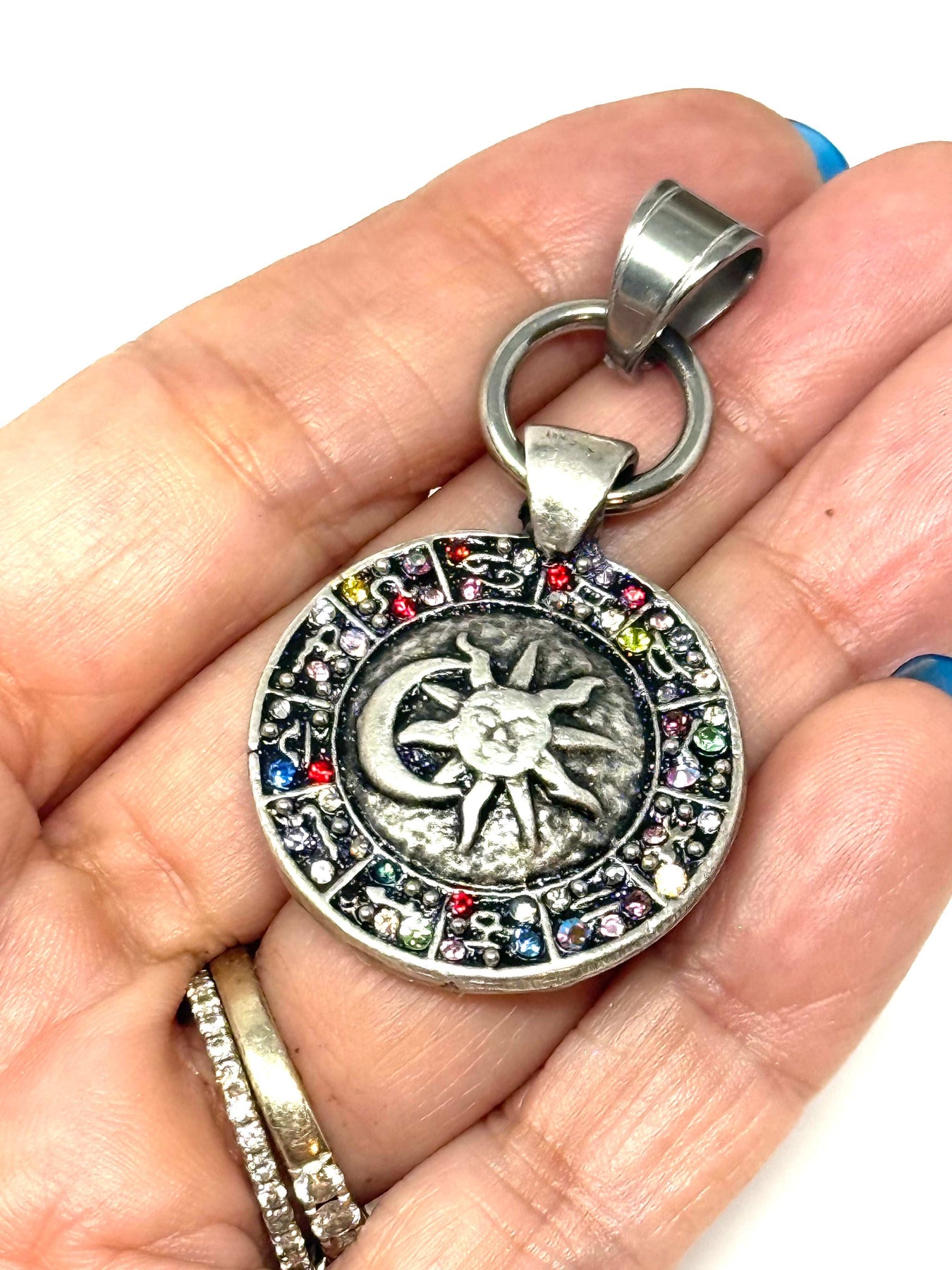 Handmade Multi-Color Crystal Sun and Moon Pendant Necklace. Its eye-catching design makes it perfect for everyday wear, allowing you to express your unique style. The best part is that you can easily switch the pendant to match any outfit or occasion—how fun is that? Elevate your accessory game and make a statement with this beautiful piece! It also makes a wonderful gift for yourself or someone special!