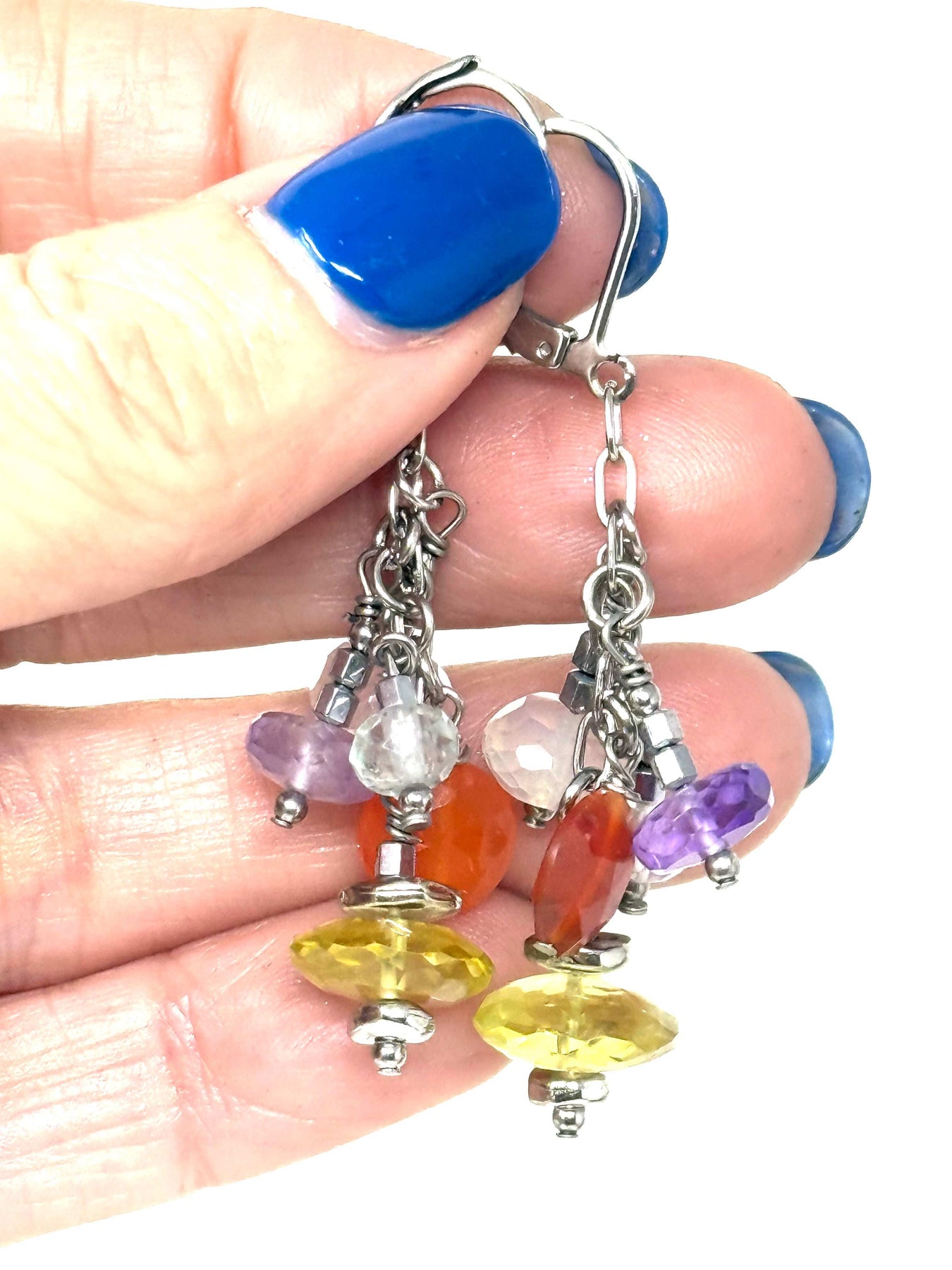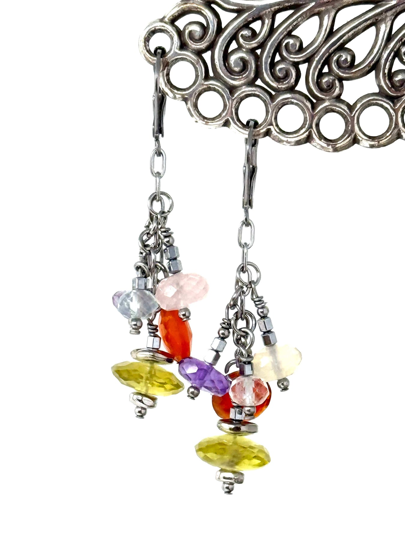 - All you need in your Jewelry Box is a pair of Handmade Multi-Color Faceted Gemstone Cluster Earrings