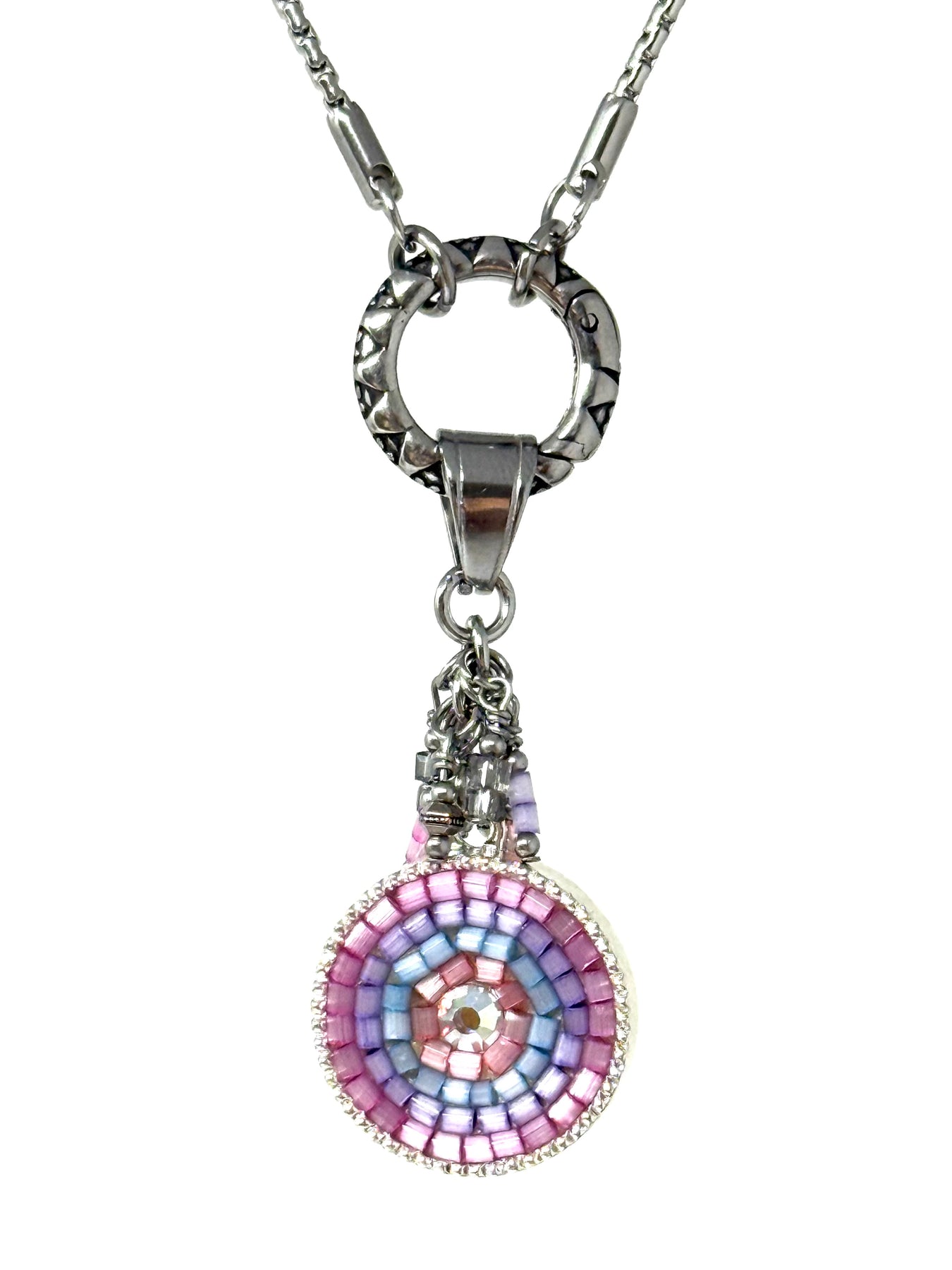Add this pretty Handmade Pastel Glass Shimmer Seed Bead Pendant to your jewelry collection today.