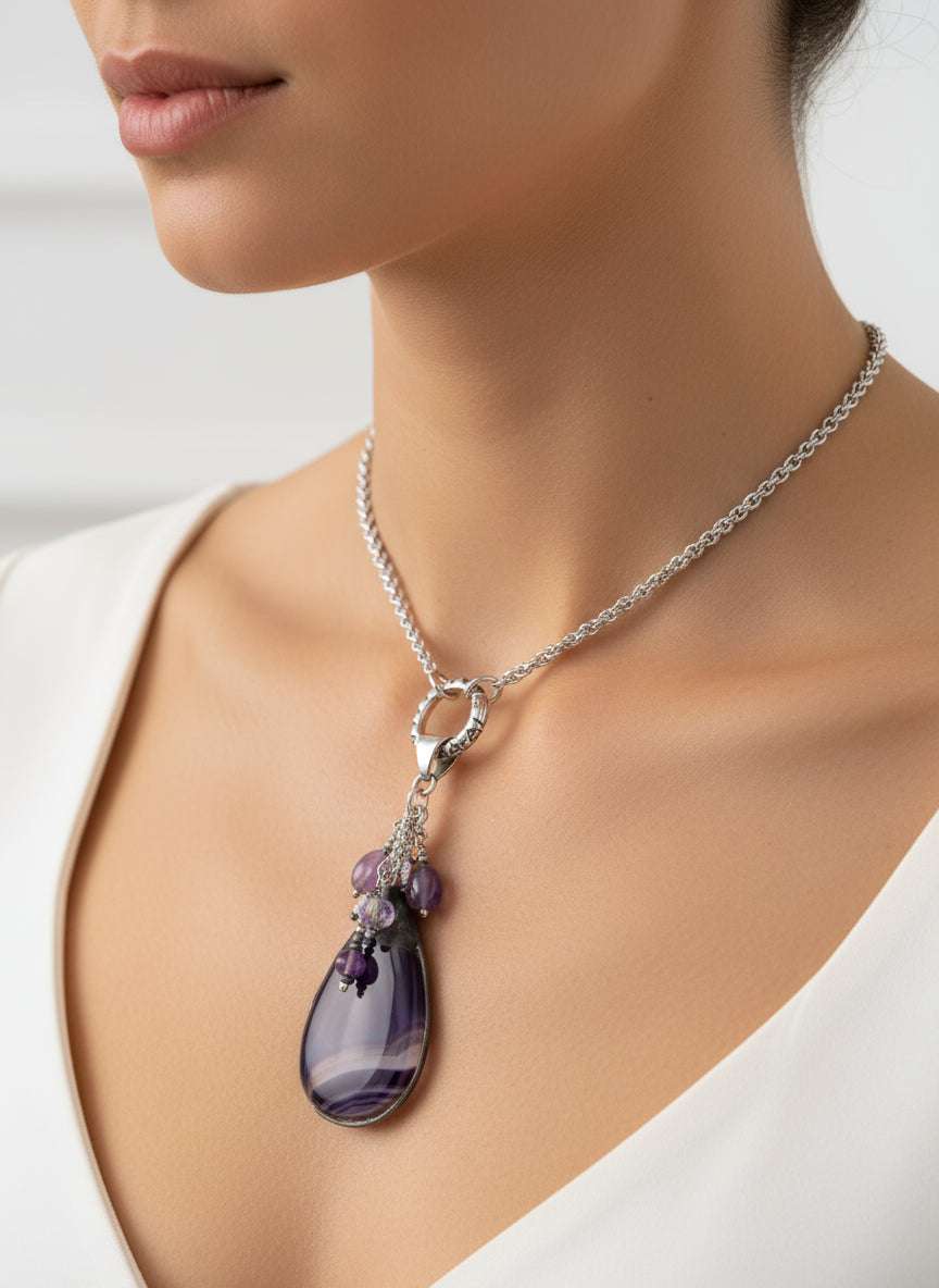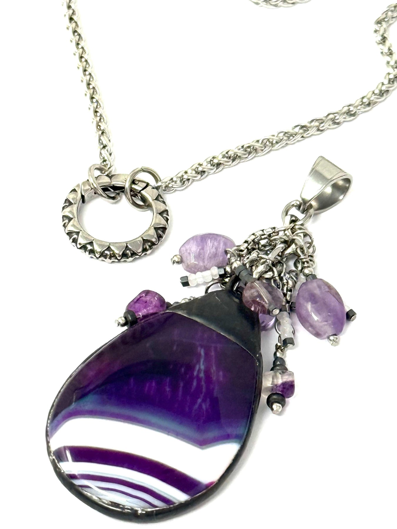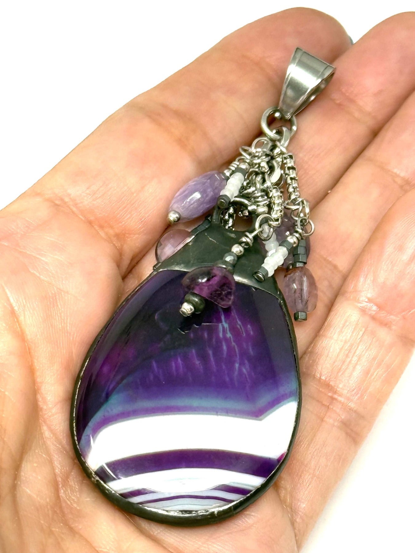 Handmade Purple Agate Soldered Beaded Cluster Pendant. Its eye-catching design makes it perfect for everyday wear, allowing you to express your unique style. The best part is that you can easily switch the pendant to match any outfit or occasion—how fun is that? Elevate your accessory game and make a statement with this beautiful piece! It also makes a wonderful gift for yourself or someone special!