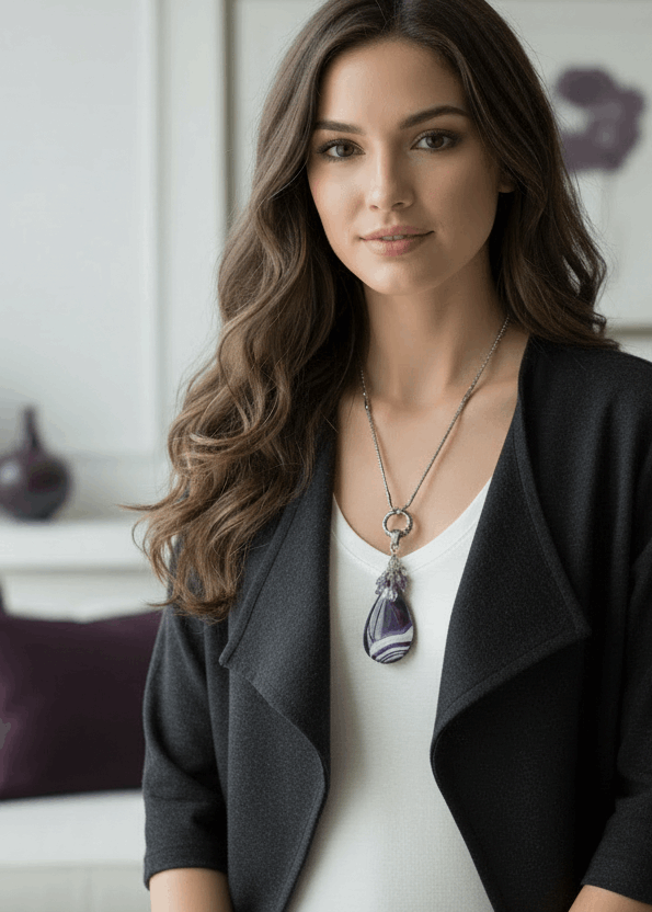Focal Gemstone: Features a genuine Purple Agate Gemstone Focal Bead with striking color and depth.
