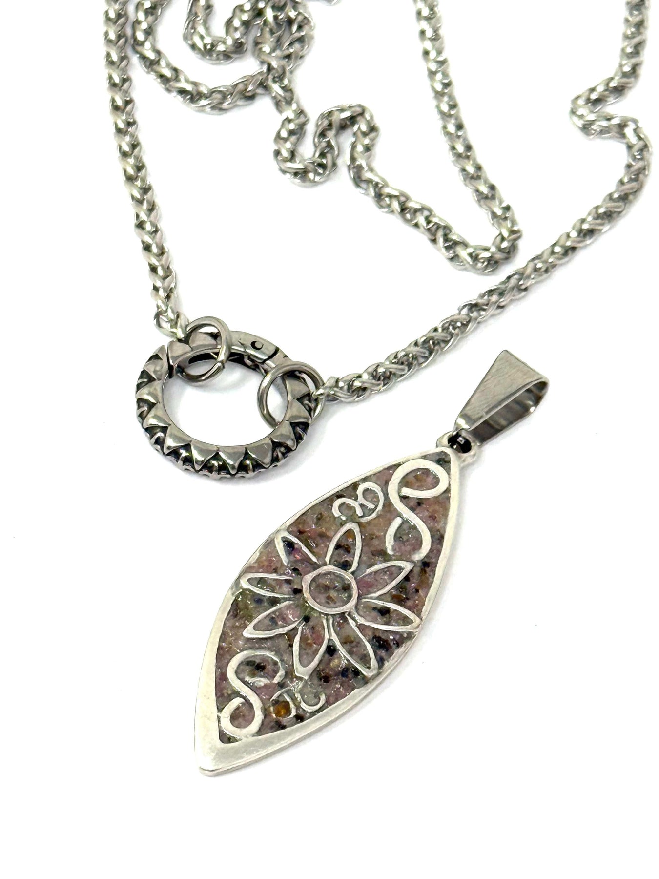 I use high-quality Stainless Steel chains and set every pendant with industrial-strength Apoxie cement to ensure your piece is tarnish-resistant and water-resistant. This jewelry is designed for your life! I stand behind every piece I make. See my Designer's Secret Care Guide for easy cleaning tips (linked in the FAQs).