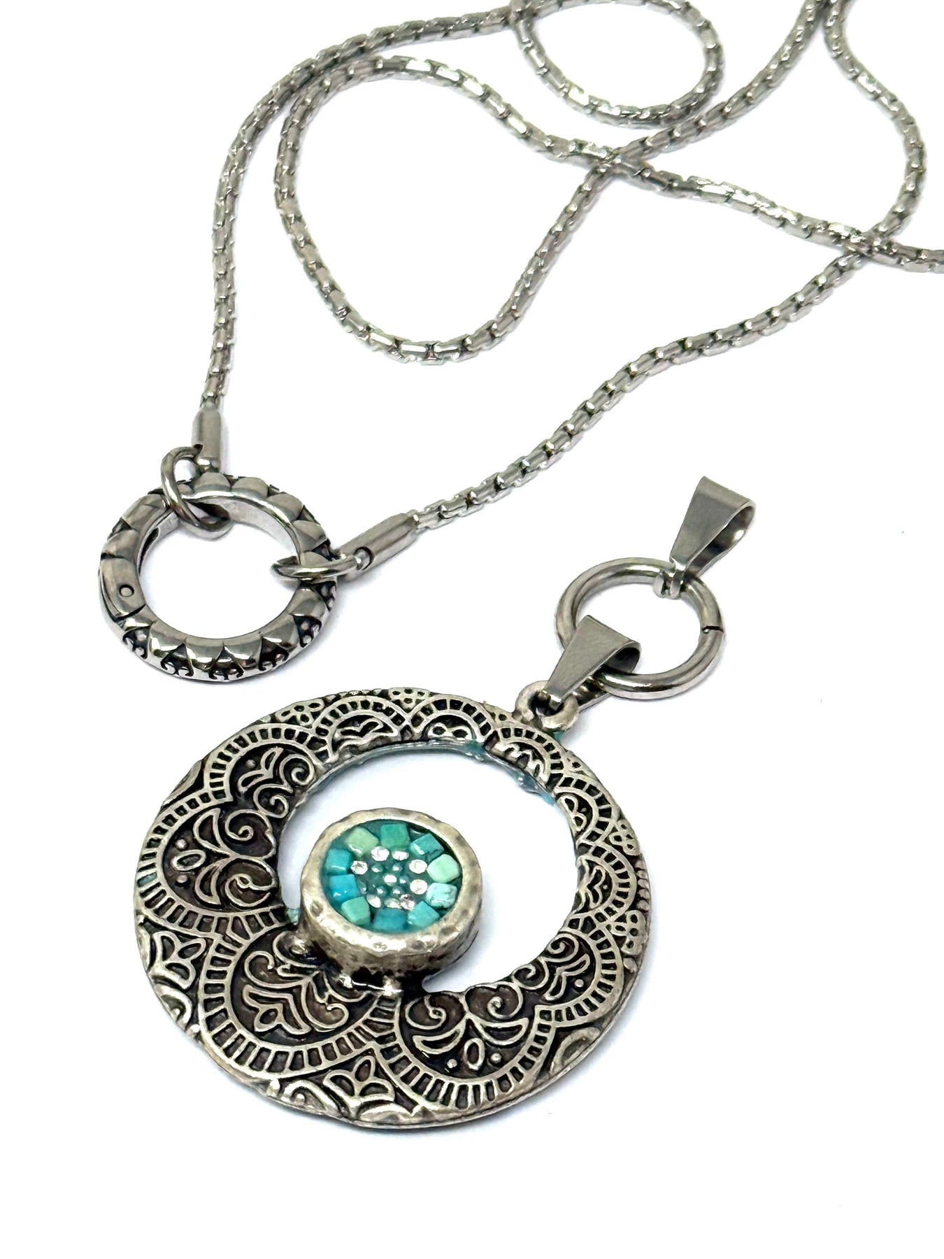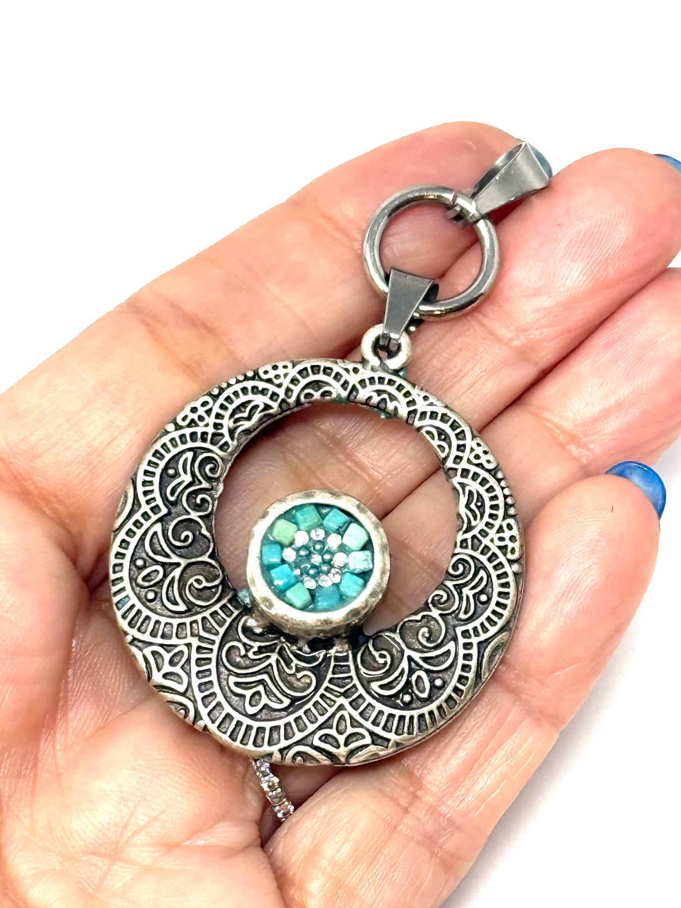 - You'll love your new Handmade Turquoise Seed Bead Mosaic Reversible Pendant