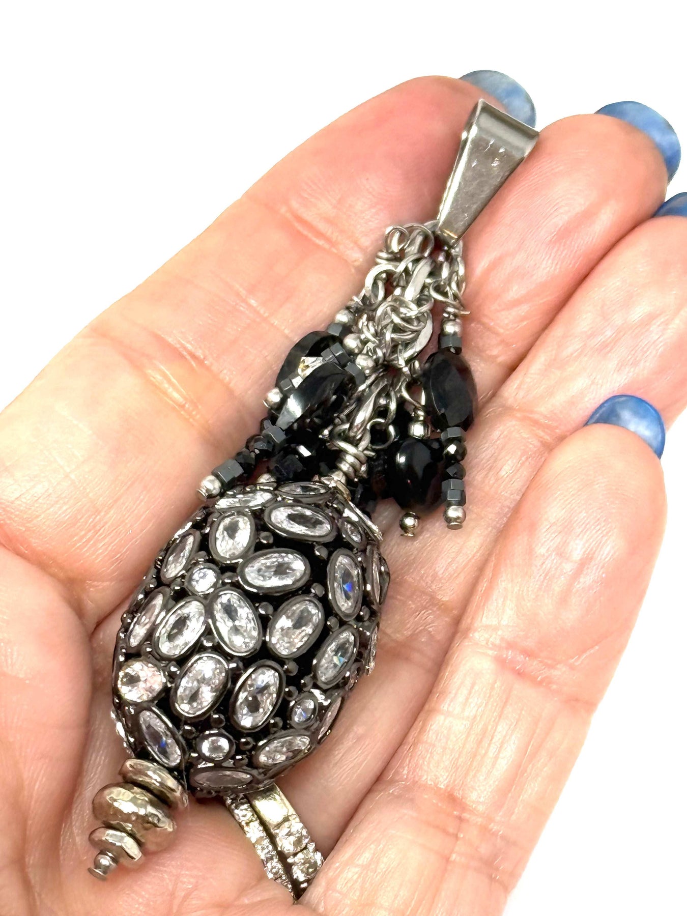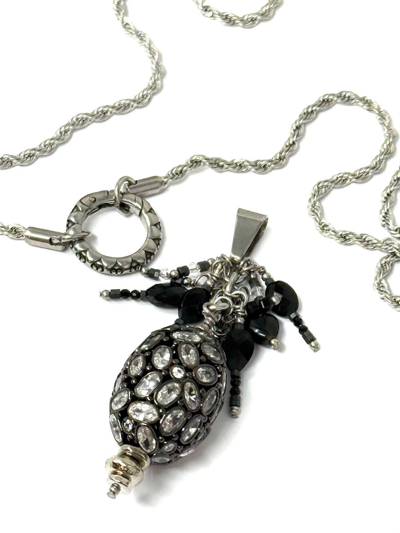- Add this pretty Interchangeable Black Spinel and Crystal Beaded Pendant Necklace
