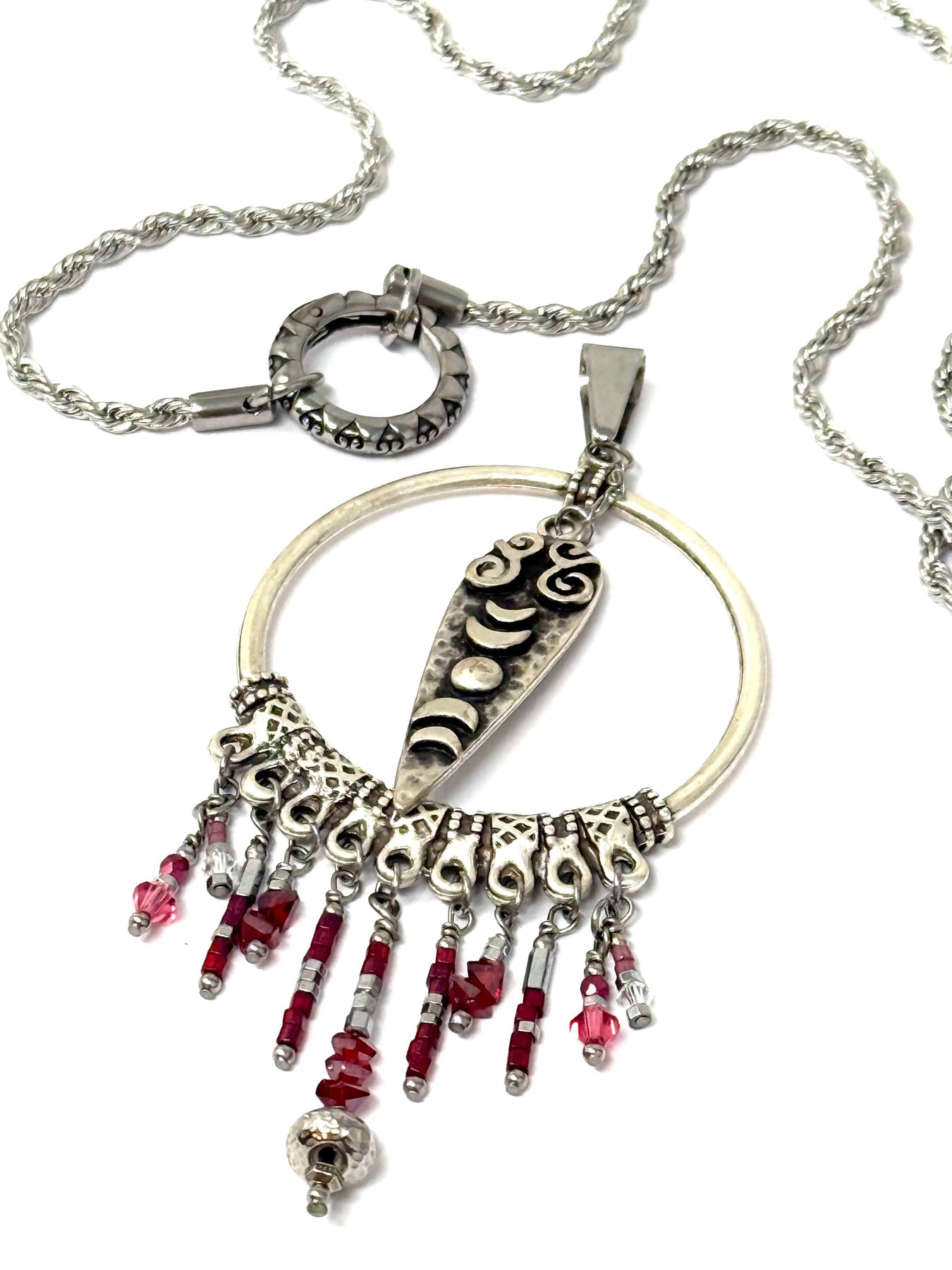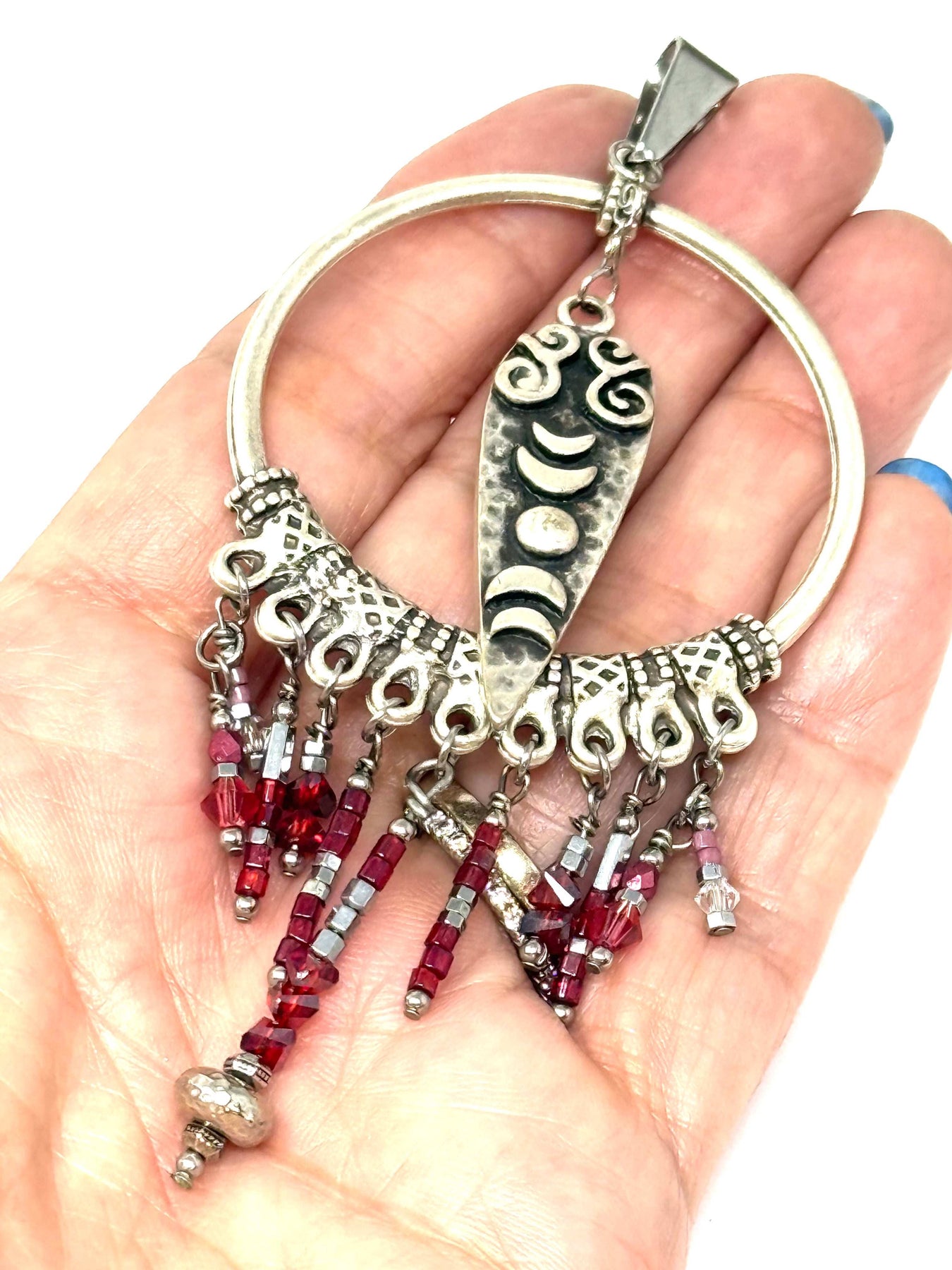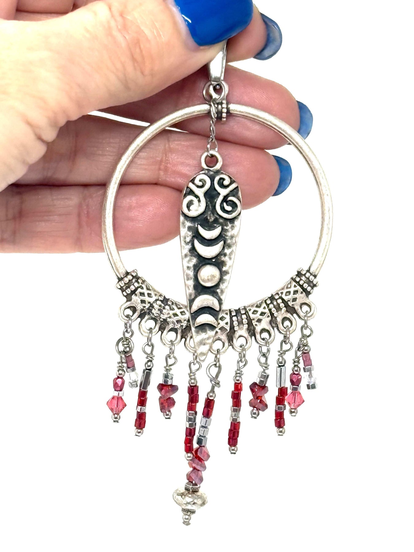 - Add this pretty Large Red Circular Beaded Dangle Pendant Necklace